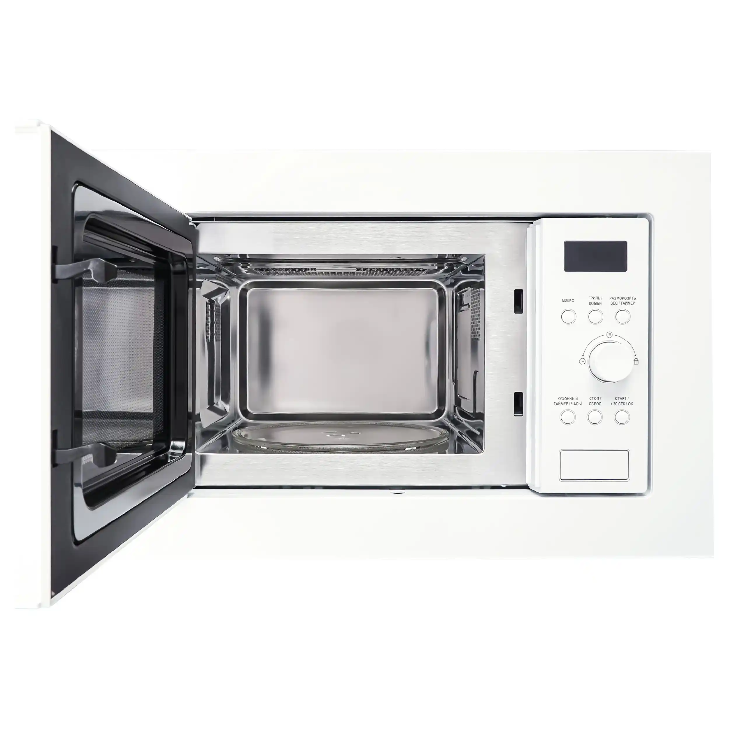 Внутреннее покрытие камеры выполнено из нержавеющей стали — это не только эстетично, но и практично: легко очищается, устойчиво к коррозии и долговечно. Диаметр поворотного стола составляет 24.5 см, что позволяет размещать разнообразные по размеру блюда без труда.