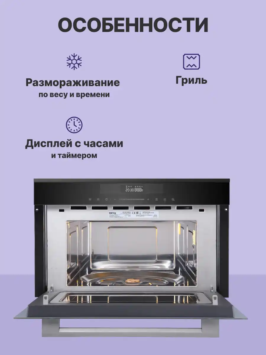 Откидная дверца обеспечивает удобство при загрузке и выгрузке блюд, а современные механизмы гарантируют долговечность эксплуатации. Высокое качество материалов, продуманный дизайн и надежные технологии делают KORTING KMI 830 GNBX незаменимым помощником на вашей кухне. Он идеально подойдет для тех, кто ценит комфорт, стиль и функциональность в повседневной жизни. Эта микроволновая печь станет не только практичным прибором, но и украшением интерьера, подчеркивающим ваш вкус к современным технологиям и эстетике.