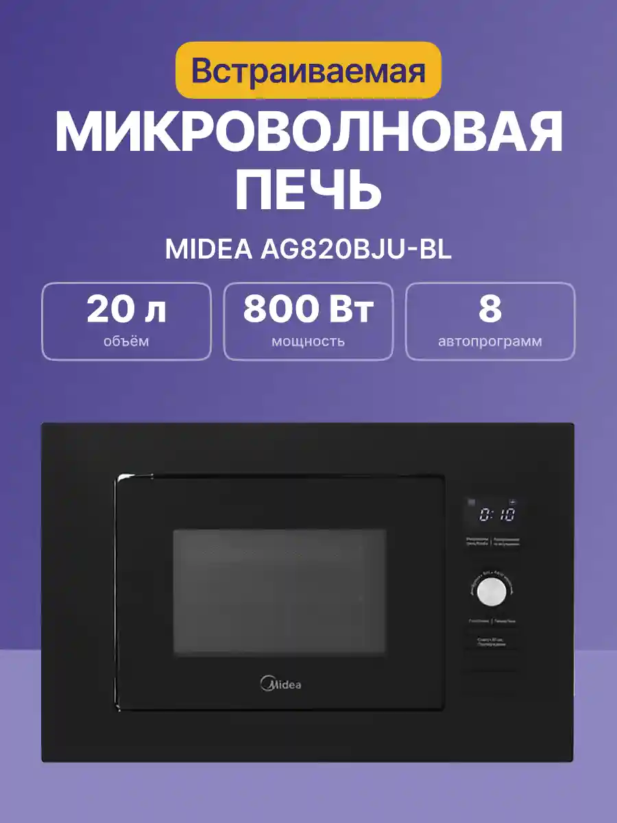 Встраиваемая микроволновая печь MIDEA AG820BJU-BL