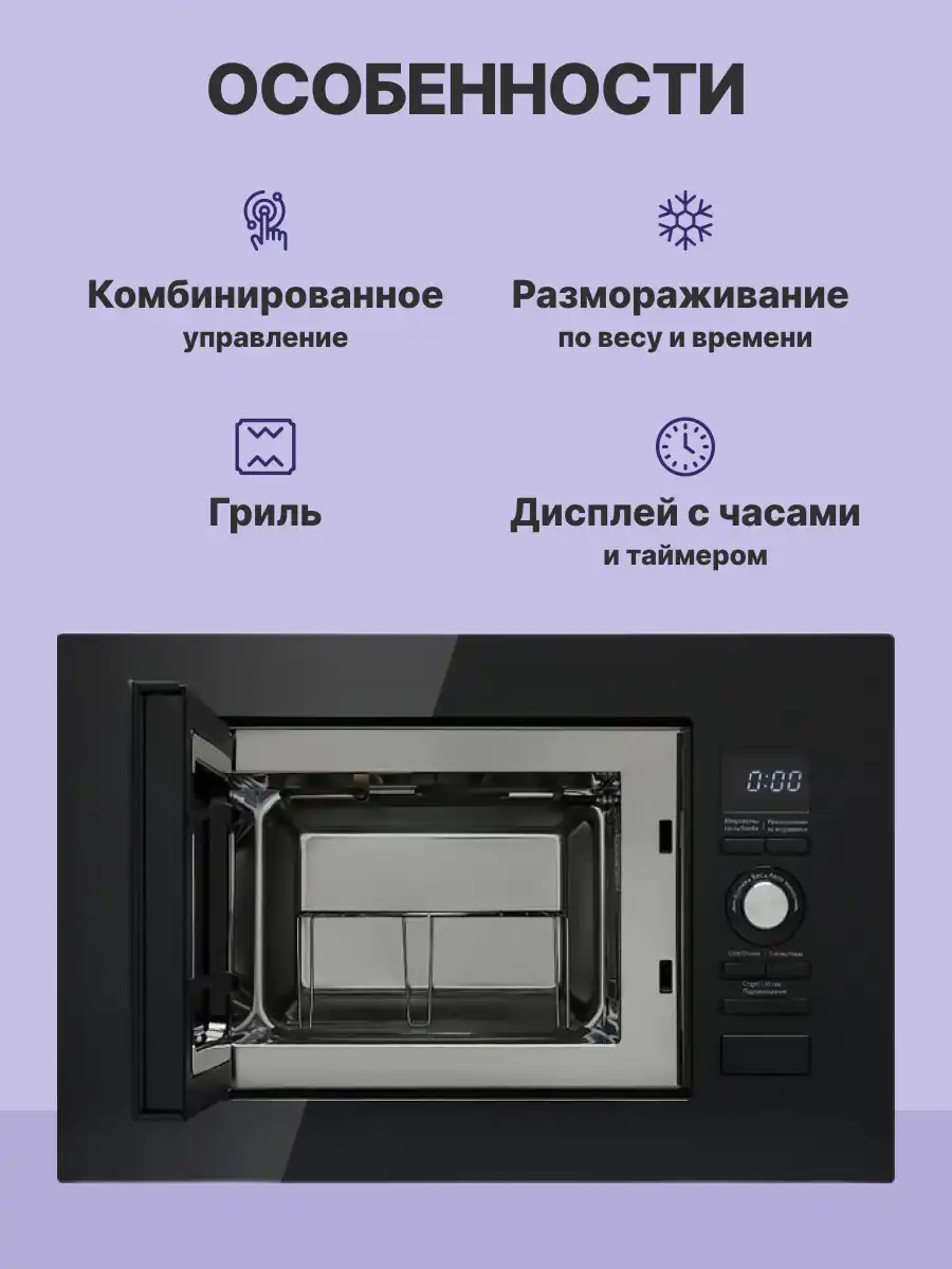 Электронное управление с интуитивным интерфейсом делает использование максимально простым. Таймер позволяет точно контролировать время приготовления или разморозки, а функция размораживания по весу или времени обеспечивает равномерное размораживание без лишних хлопот. Звуковой сигнал по окончании работы информирует о завершении процесса, а защита детей гарантирует безопасность в доме — устройство не запустится случайно или без вашего ведома. Рамка из акрила и стеклянная дверца добавляют эстетики и долговечности внешнему виду прибора.