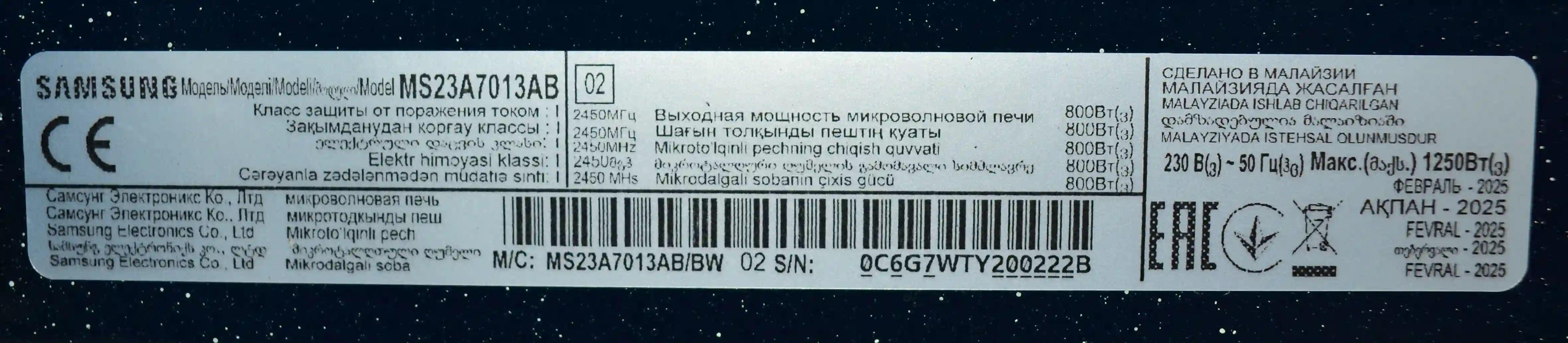 Встраиваемая микроволновая печь SAMSUNG MS23A7013AB/BW k6 000061753