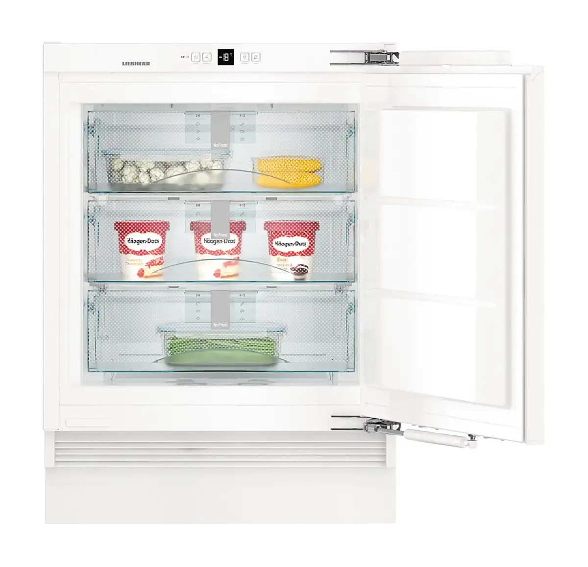Liebherr SUIGN 1554-26 001 обладает общим объемом 98 литров, что позволяет удобно хранить большое количество продуктов. Внутри камеры расположены полностью закрытые выдвижные ящики системы FrostSafe, которые обеспечивают удобный доступ и надежное хранение продуктов. Прозрачные контейнеры позволяют легко найти нужные продукты, а система VarioSpace позволяет гибко организовать пространство для хранения.