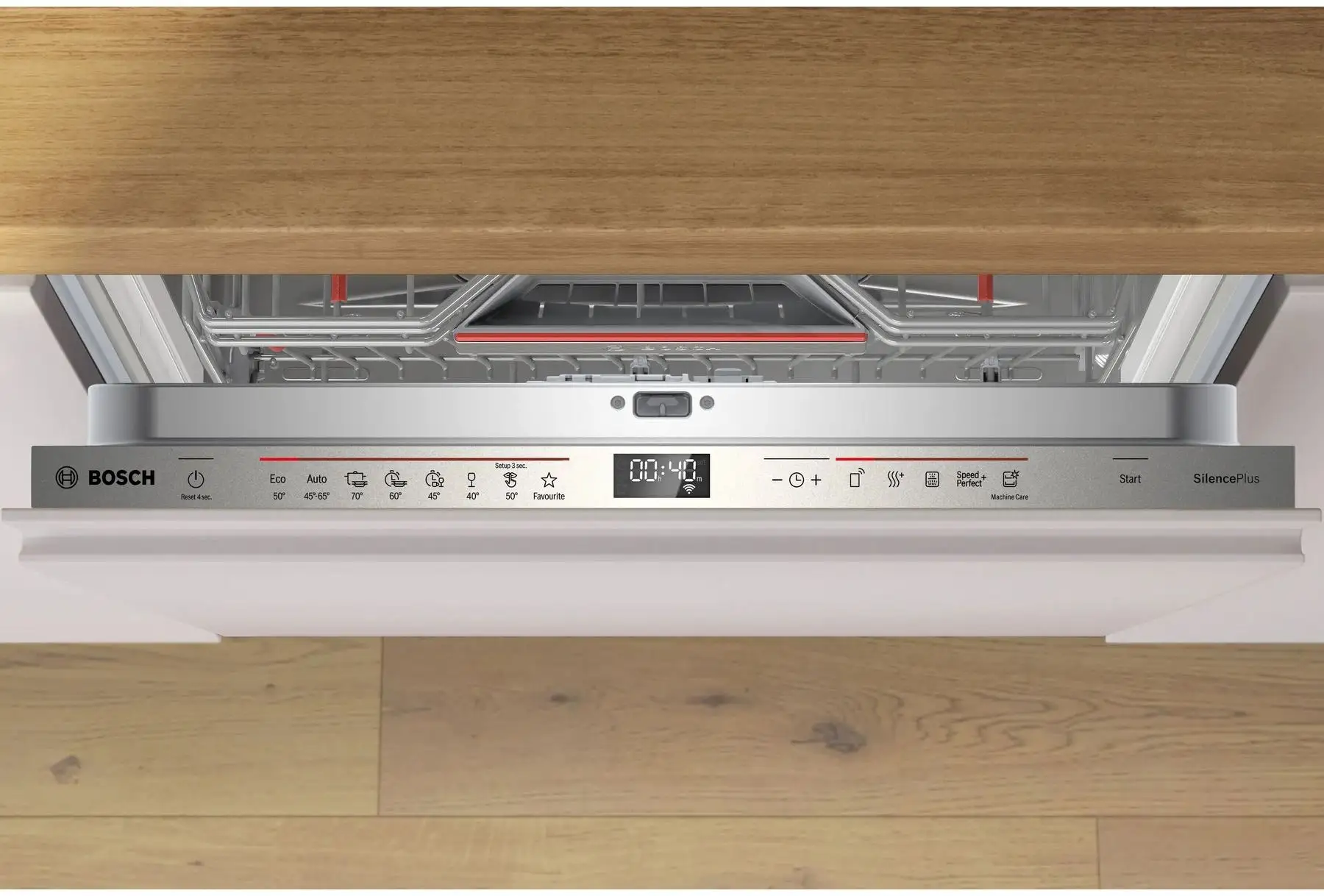 Благодаря функции Time Light вы не только знаете, что посудомоечная машина еще работает, но и сколько времени осталось, поскольку оставшееся время или информация в режиме реального времени проецируется на пол. Также отображается статус выполнения программы. Программы посудомоечной машины не всегда идеально подходят для ваших индивидуальных потребностей? Благодаря функции загрузки программ, в посудомоечных машинах Bosch дополнительные программы можно загрузить через приложение Home Connect. Загрузка программ гарантирует идеальные результаты мытья посуды, точно соответствующие вашим требованиям. Система автоматического открывания дверцы OpenAssist позволяет открывать полностью интегрированные посудомоечные машины ActiveWater одним касанием передней панели шкафа. Дверца слегка приоткрывается, облегчая загрузку и выгрузку. Передняя панель без ручек органично вписывается в современные дизайнерские кухни с цельными фасадами шкафов, не снижая при этом удобства использования. Засохшие остатки хлопьев? Больше никаких утомительных соскребаний: в зоне Extra Clean Zone все, что вы поместите в верхнюю корзину, тщательно отмывается. Три вращающиеся струи воды размягчают загрязнения. И все это без добавления моющих средств или повышения температуры. Просто нажмите соответствующую кнопку, и пусть посудомоечная машина сделает всю тяжелую работу за вас.