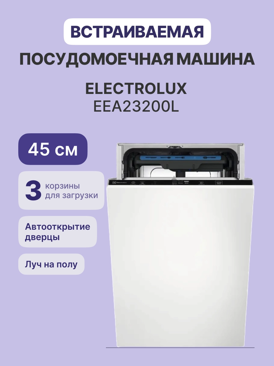 Встраиваемая узкая посудомоечная машина ELECTROLUX EEA23200L — это современное решение для небольших кухонь, сочетающее в себе компактность и высокую эффективность. Эта модель предназначена для встраивания в кухонные гарнитуры и обладает рядом преимуществ, которые делают её отличным выбором для тех, кто ценит функциональность и стиль.