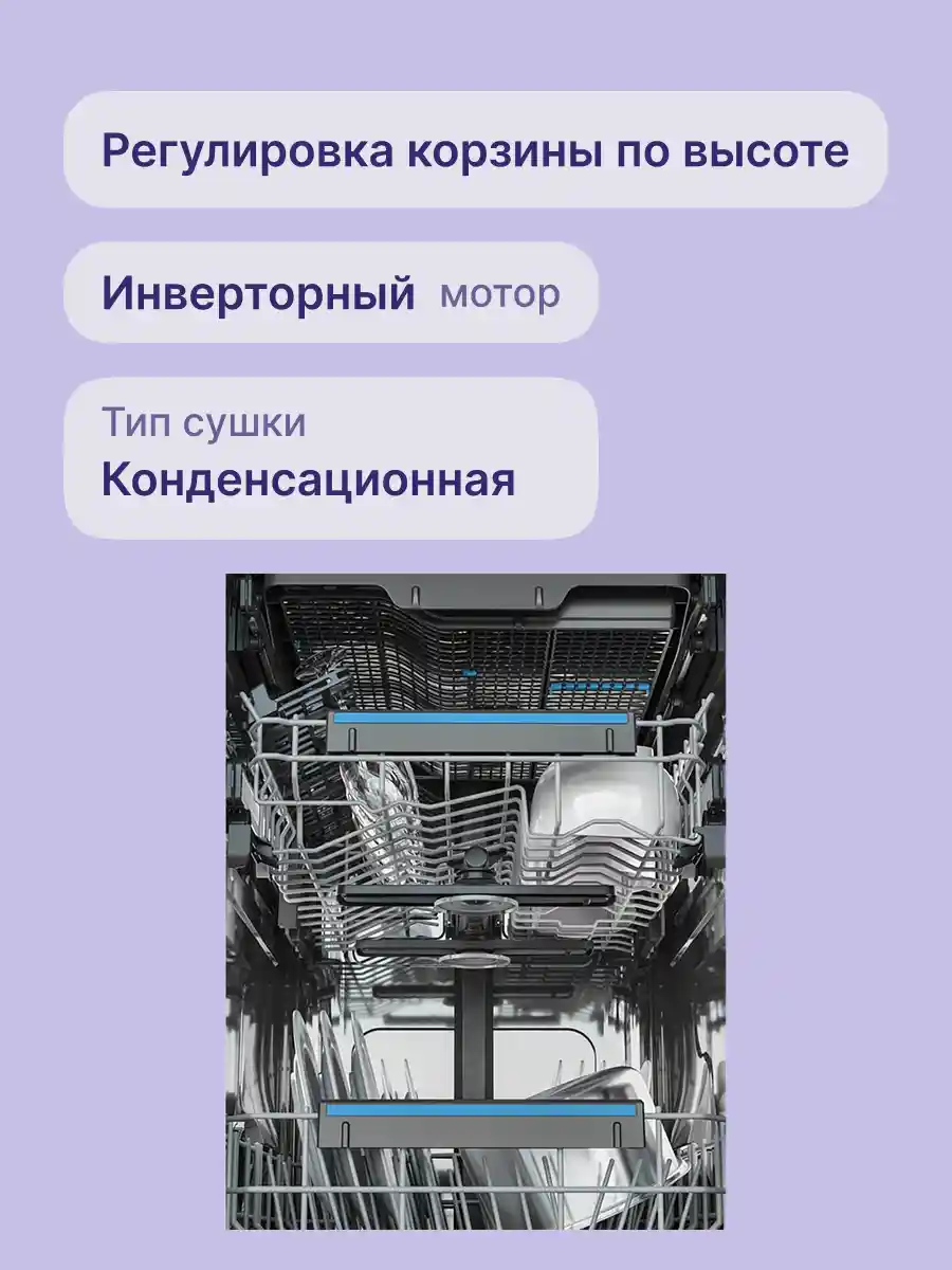 Система сушки с открыванием дверцы позволяет эффективно сушить посуду, предотвращая образование конденсата и обеспечивая её быстрое высыхание. Это особенно важно для поддержания гигиены и предотвращения появления неприятных запахов.