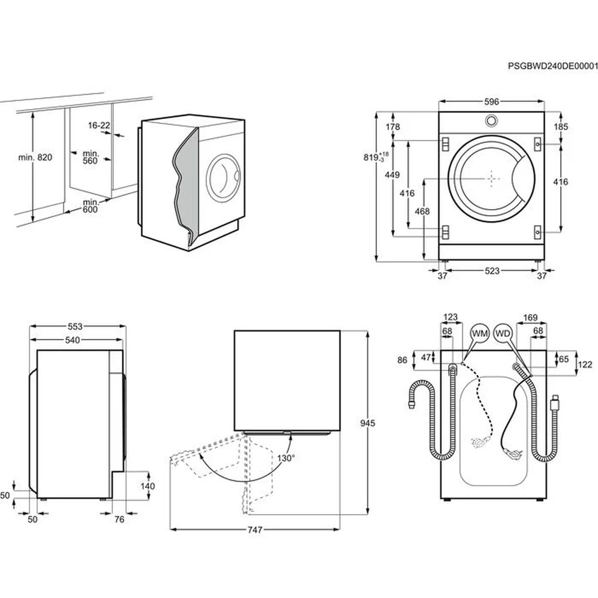 Встраиваемая стиральная машина ELECTROLUX EWN7F447WI оснащена четырьмя регулируемыми ножками — даже при небольших неровностях пола ее ез труда можно будет установить устойчиво. Мощность подключения составляет 2100 Вт, длина сетевого шнура — 1,62 м, подающего шланга — 1,5 м, сливного — 1,45 м. Размеры прибора: 819x596x540 мм.