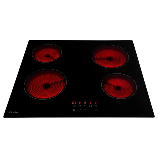 Зоны нагрева Evelux оборудованы современными нагревательными элементами Hi-light. Конфорка достигает установленной рабочей температуры буквально за считанные секунды, позволяет плавно регулировать мощность.