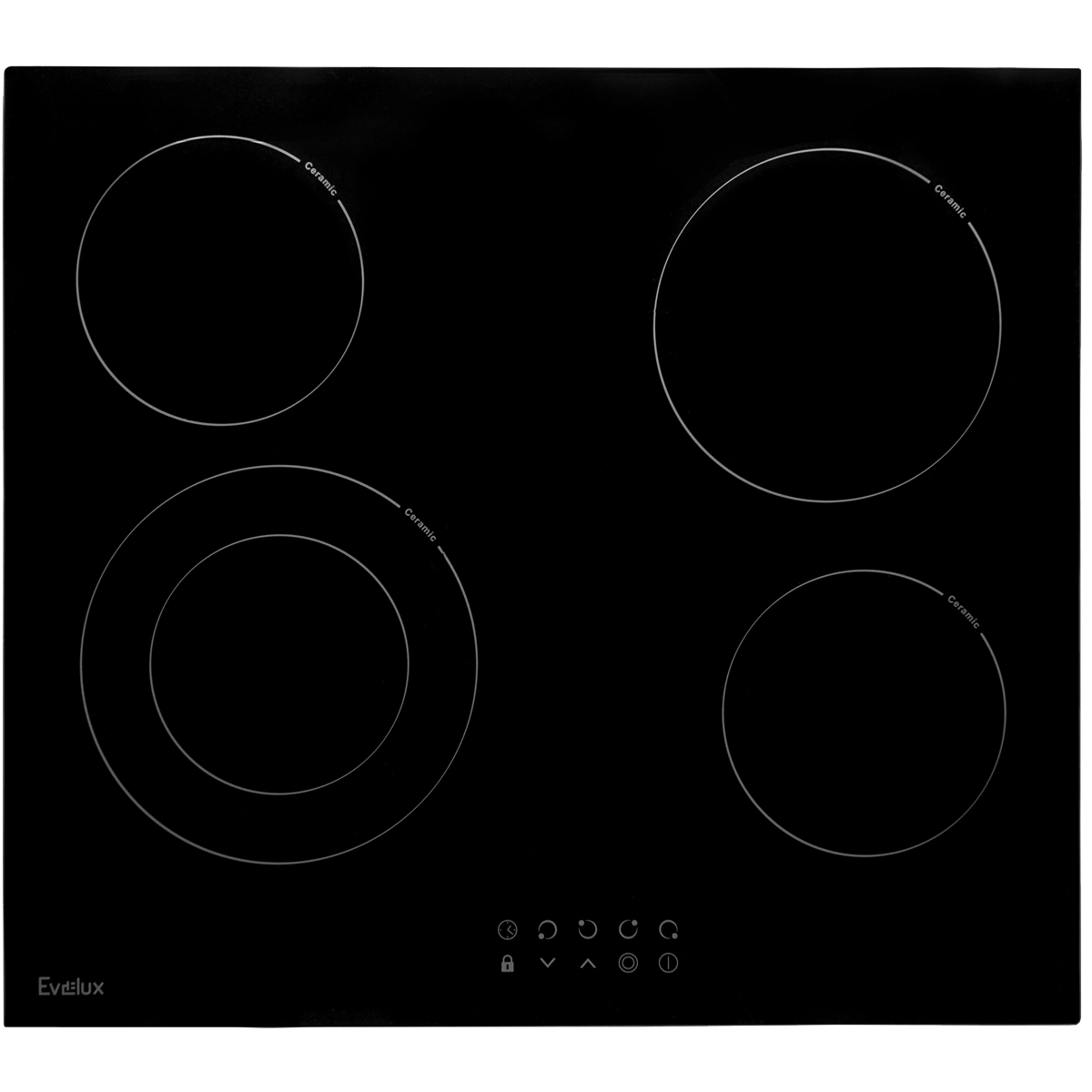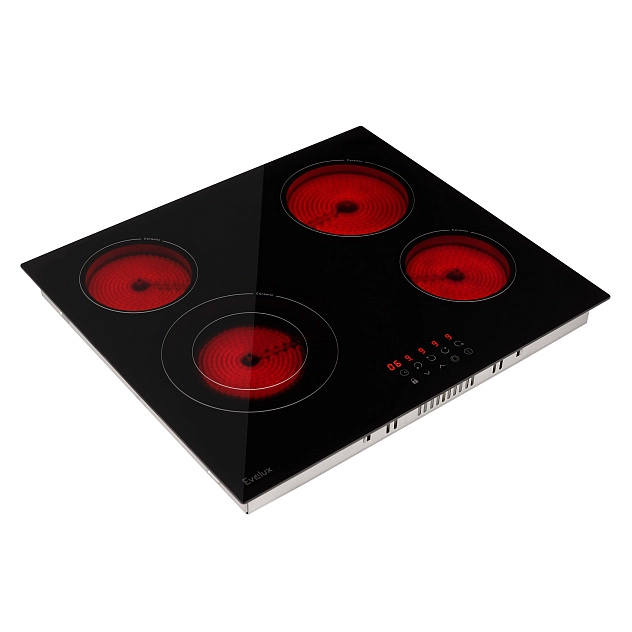 Зоны нагрева Evelux оборудованы современными нагревательными элементами Hi-light. Конфорка достигает установленной рабочей температуры буквально за считанные секунды, позволяет плавно регулировать мощность.
