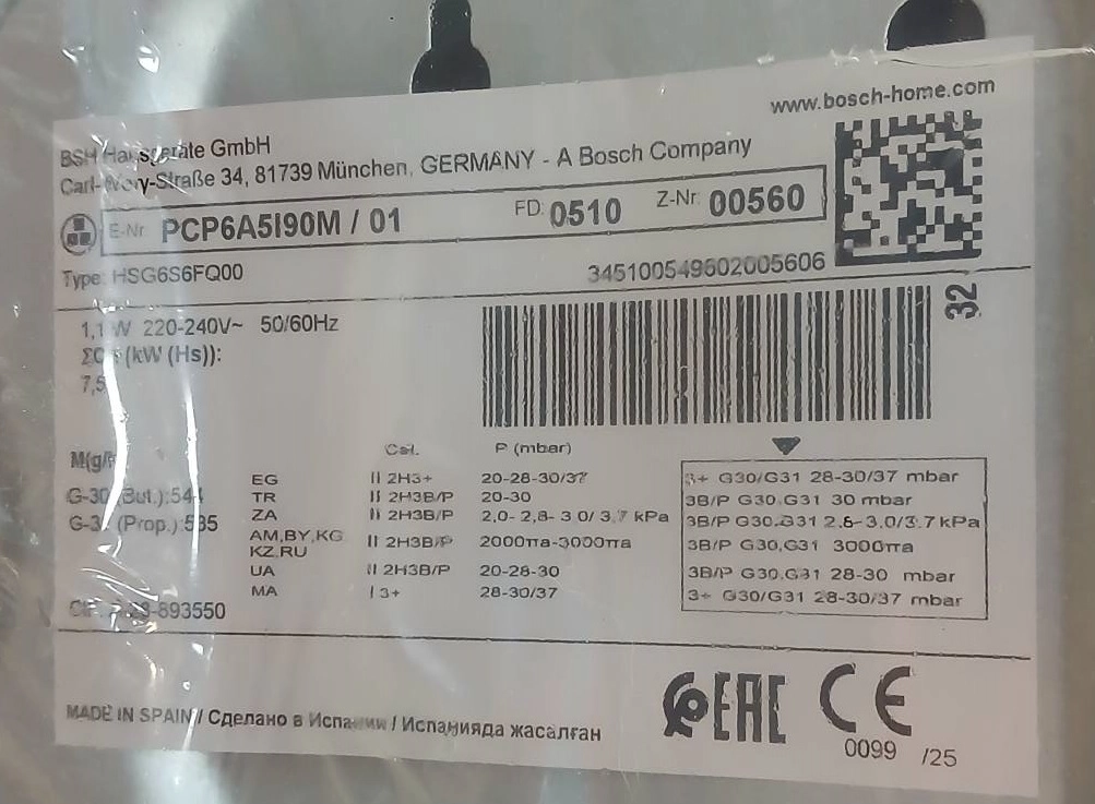 Встраиваемая газовая панель BOSCH PCP6A5I90M k6 000096249