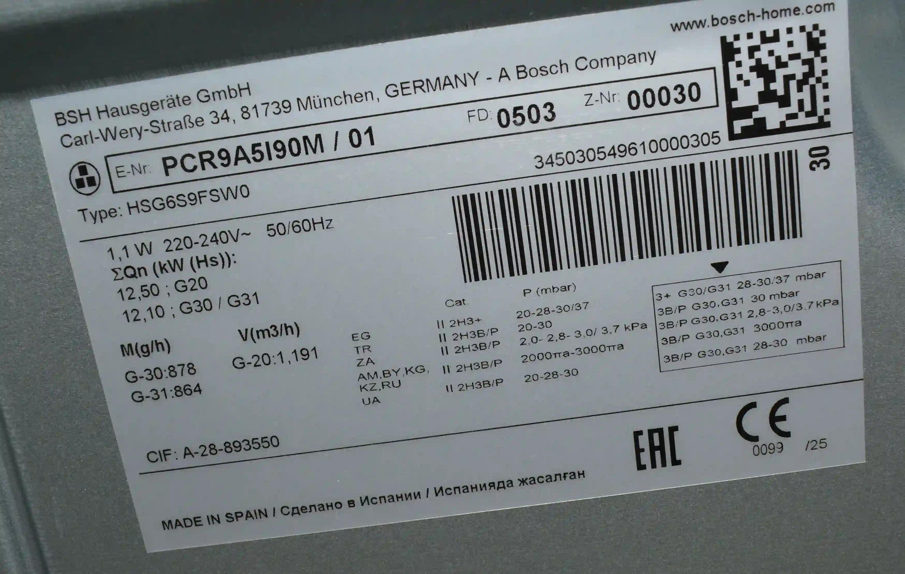 Встраиваемая газовая панель BOSCH PCR9A5I90M Serie 6 k6 000075215