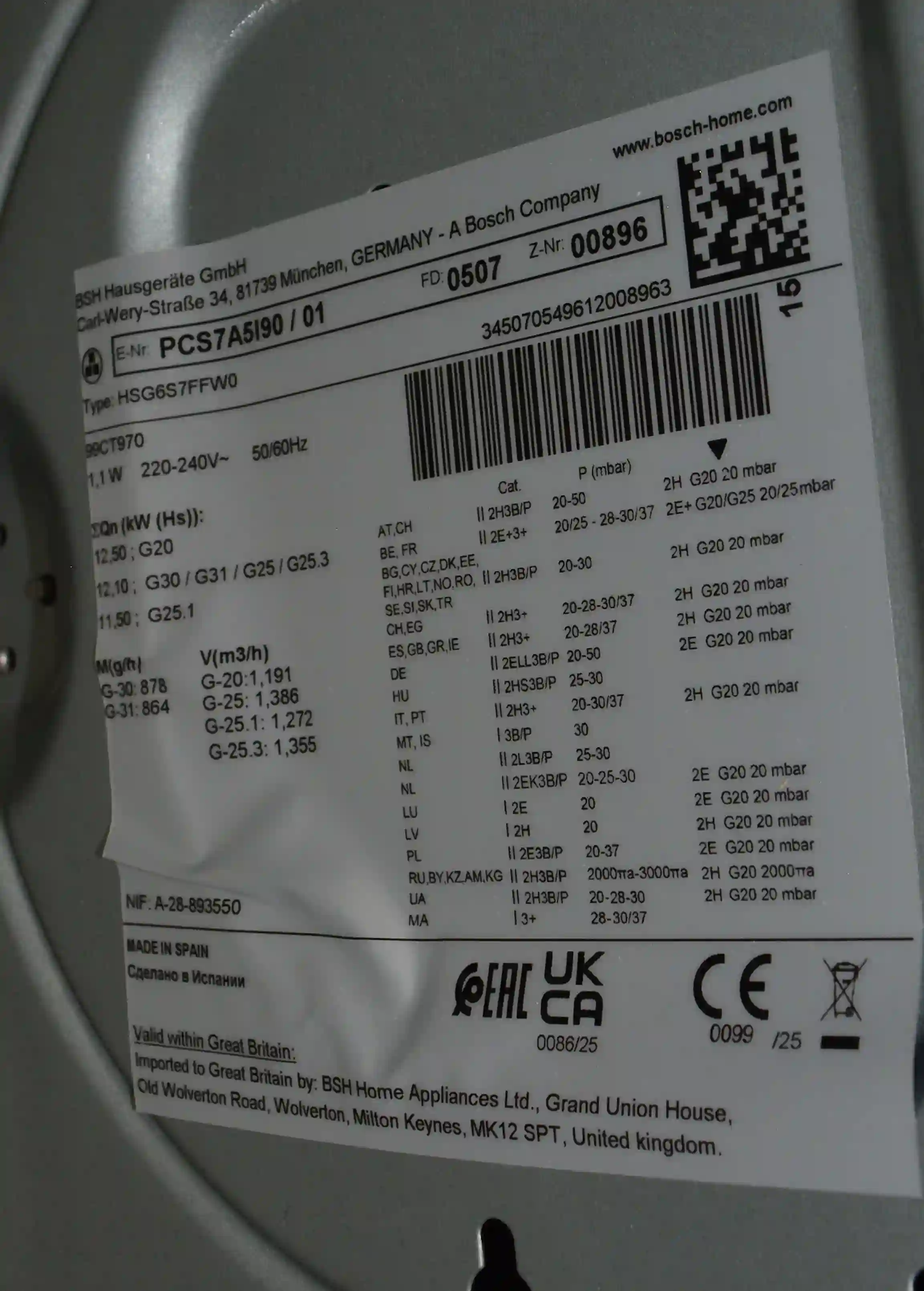 Встраиваемая газовая панель BOSCH PCS7A5I90, нержавеющая сталь k6 000076193