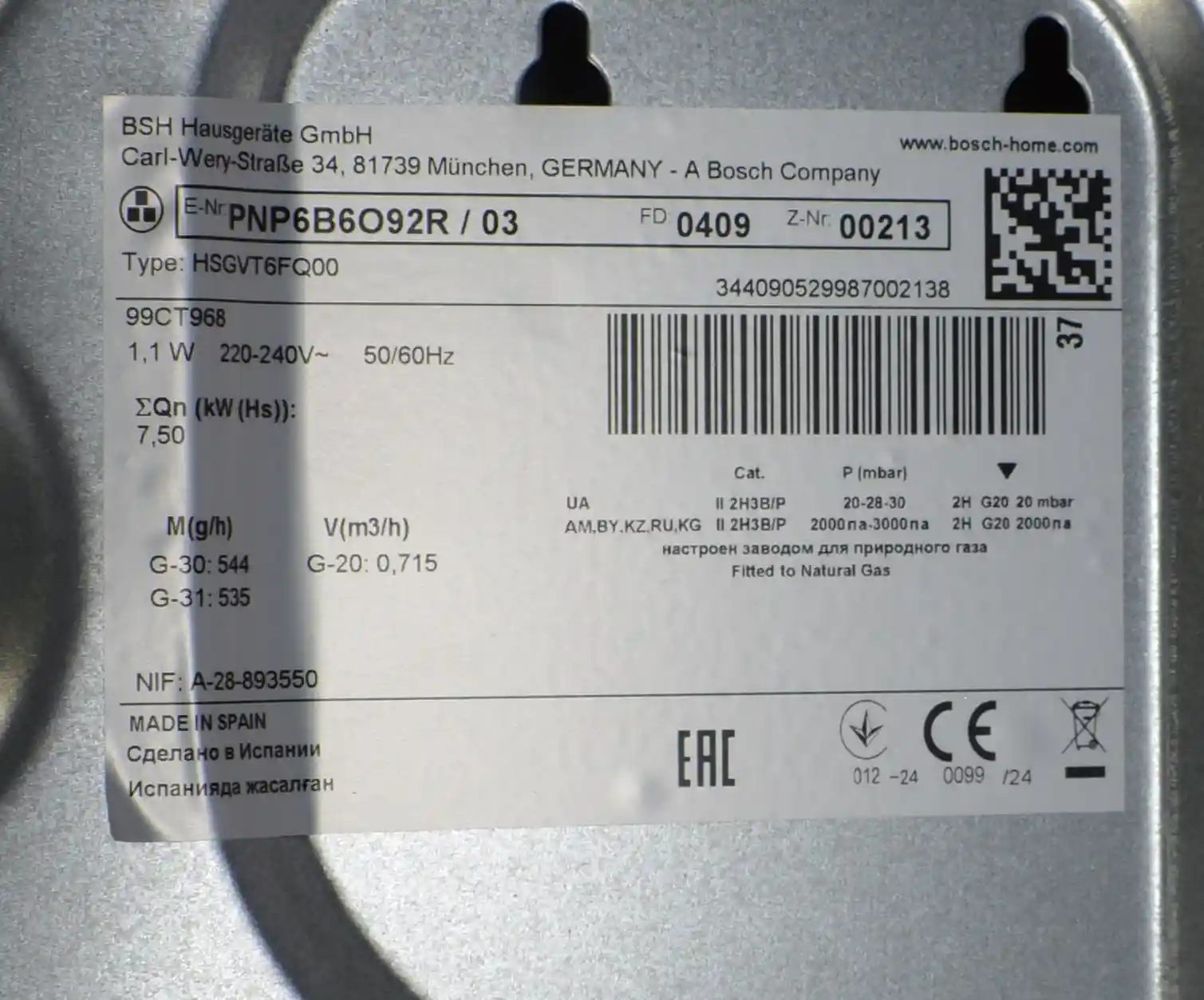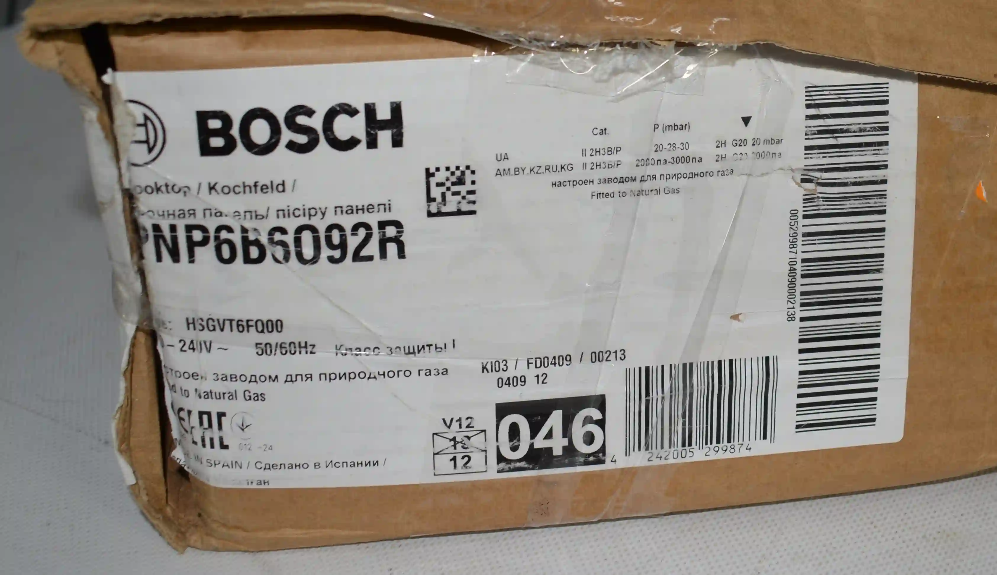 Встраиваемая газовая панель BOSCH PNP6B6O92R Serie 4 k6 000042444