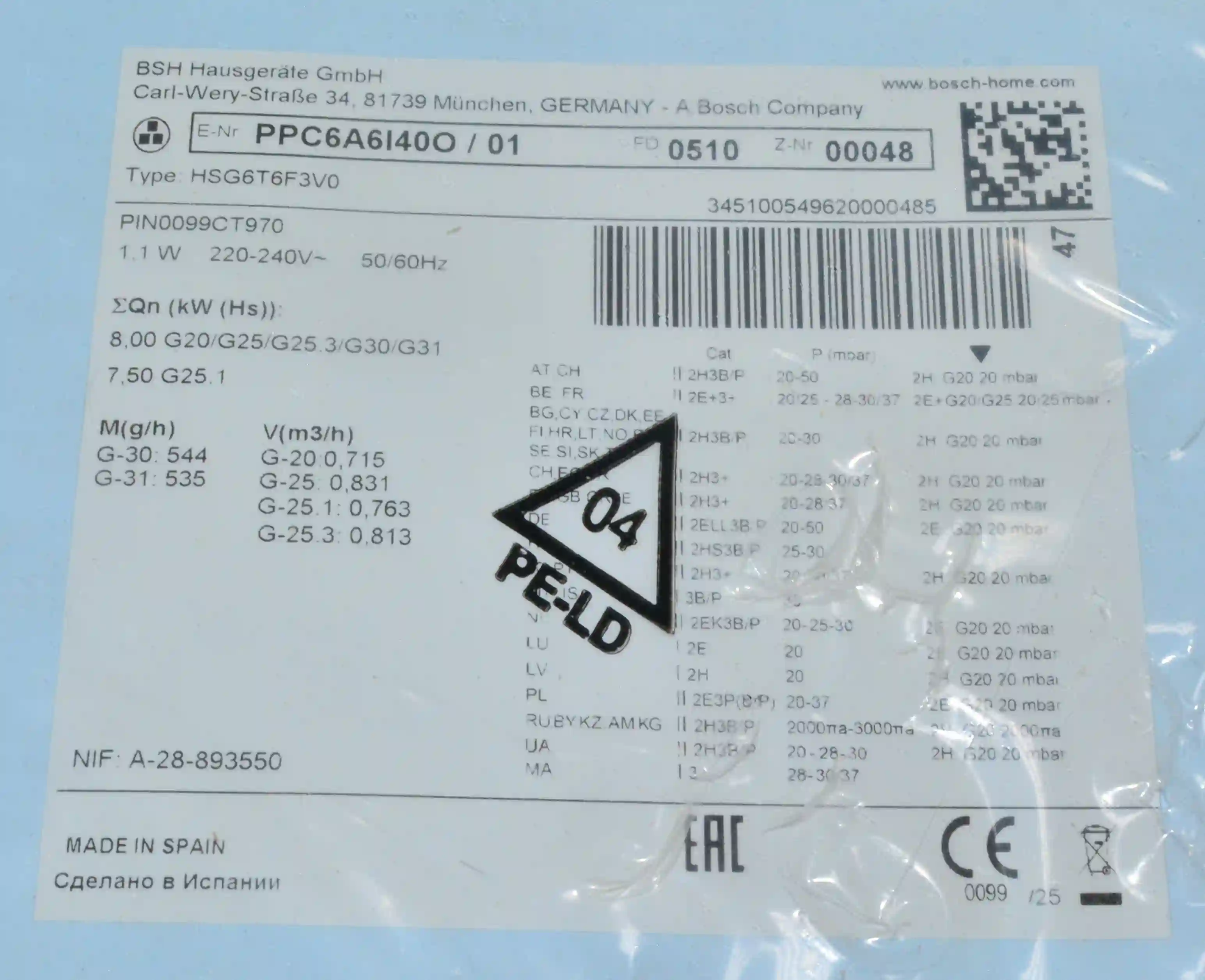 Встраиваемая газовая панель BOSCH PPC6A6I40O Serie 6, чёрная k4 000089546