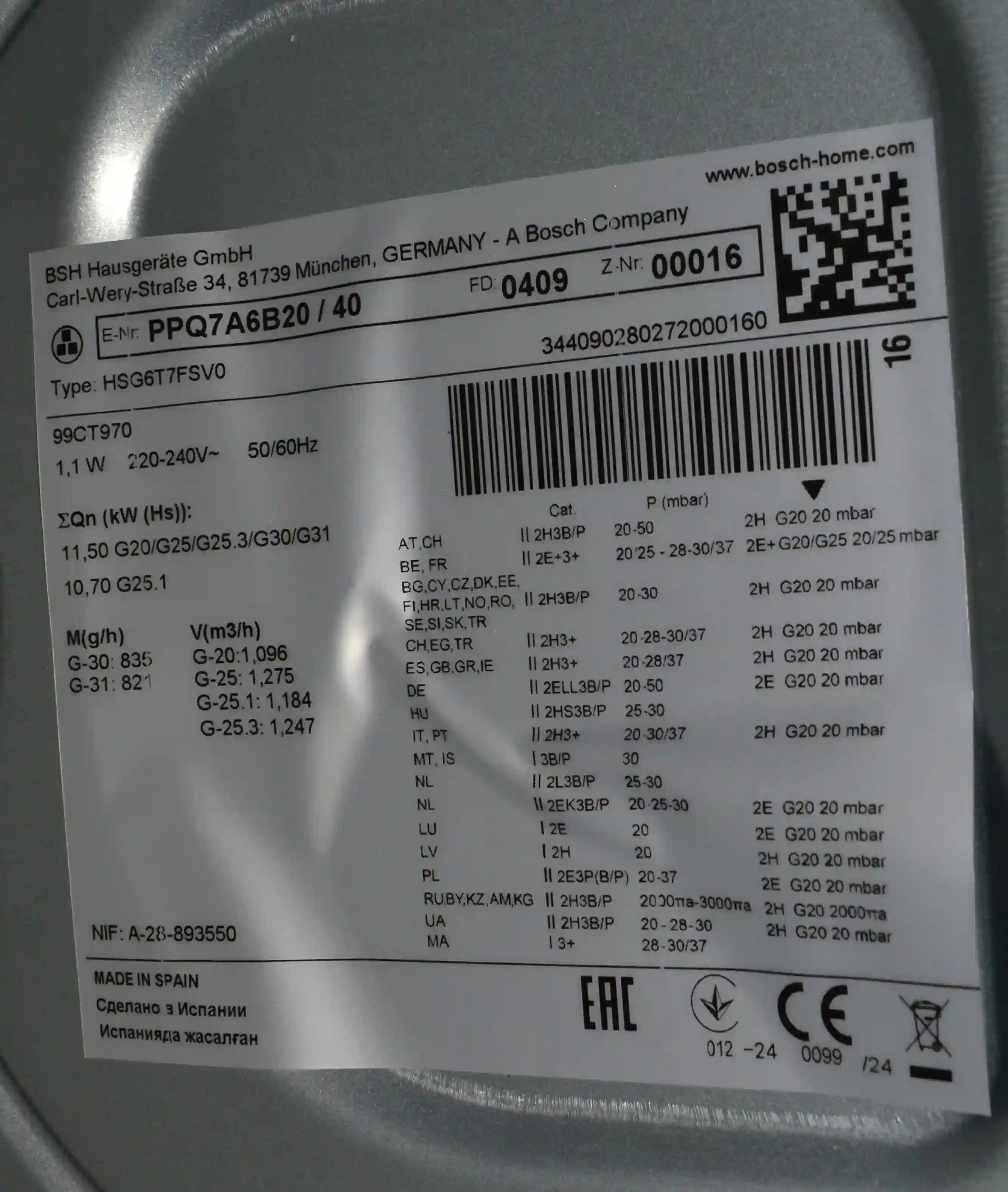 Встраиваемая газовая панель BOSCH PPQ7A6B20 k6 000050584