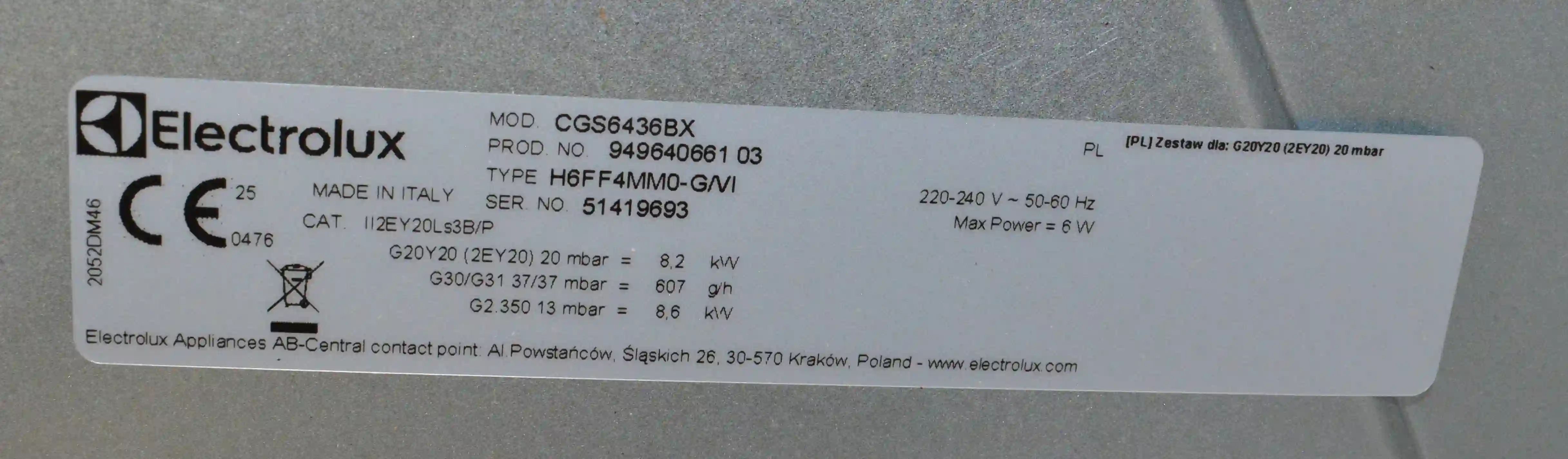 Встраиваемая газовая панель ELECTROLUX CGS6436BX k4 000070443