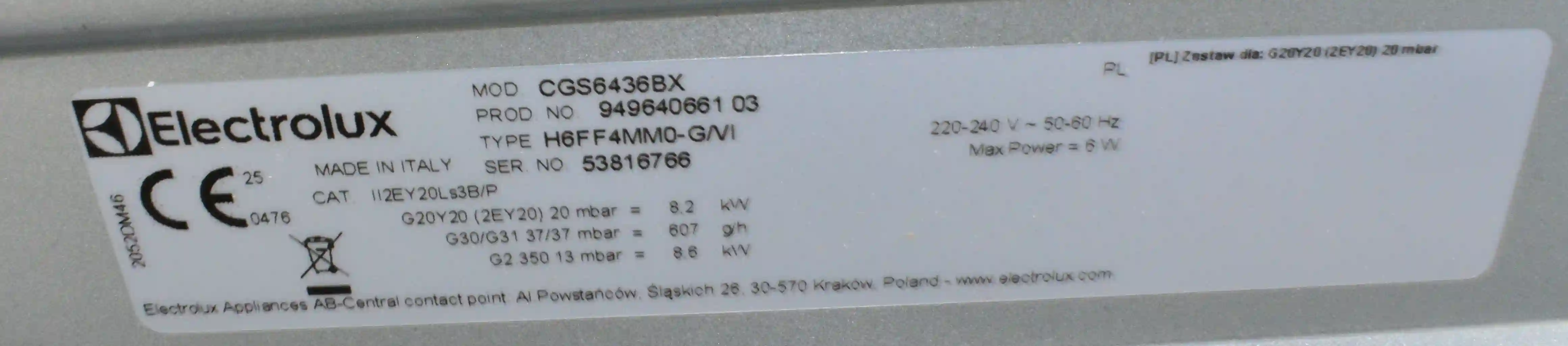 Встраиваемая газовая панель ELECTROLUX CGS6436BX k6 000086318
