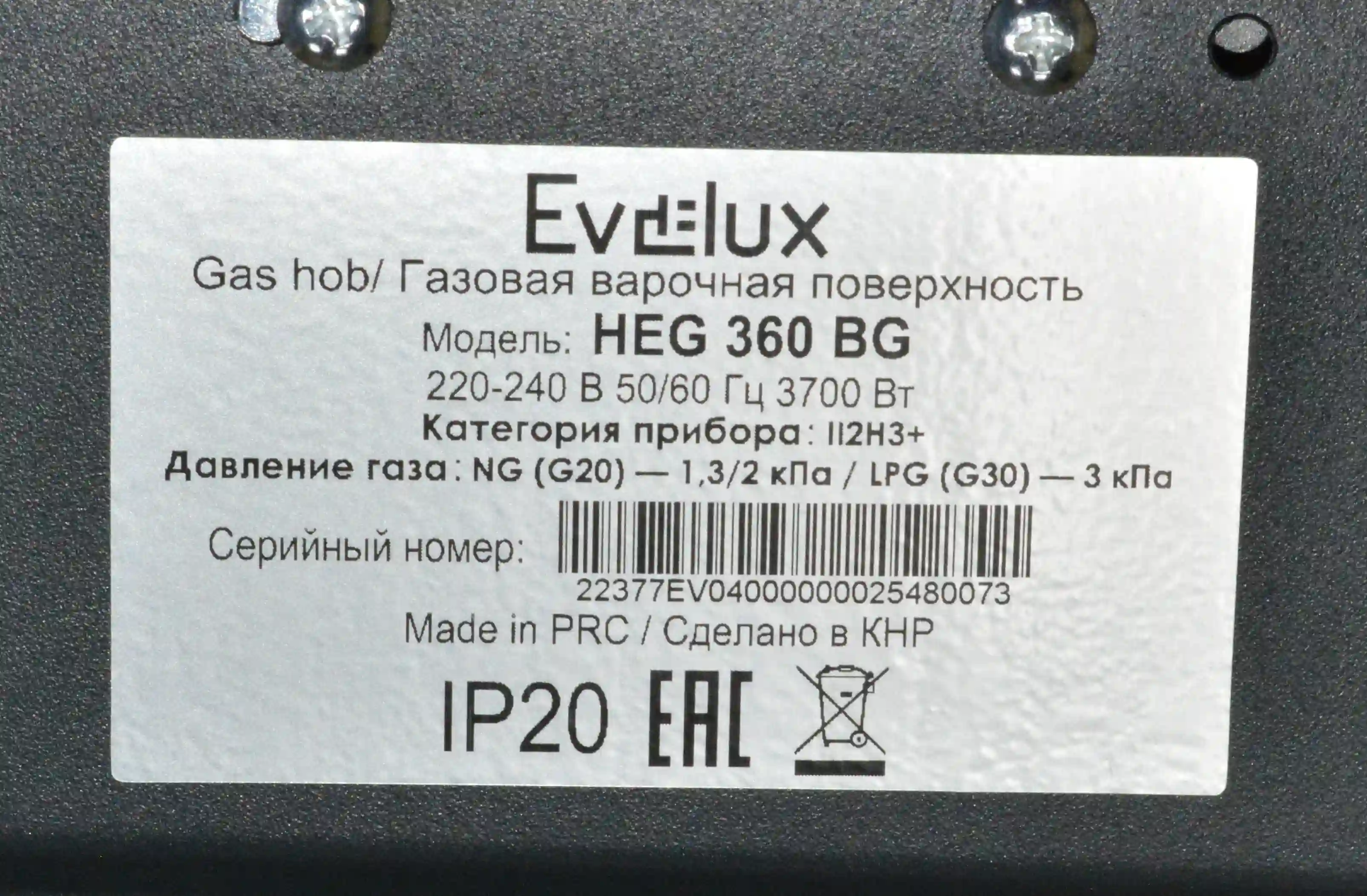 Встраиваемая газовая панель EVELUX HEG 360 BG k6 000097045