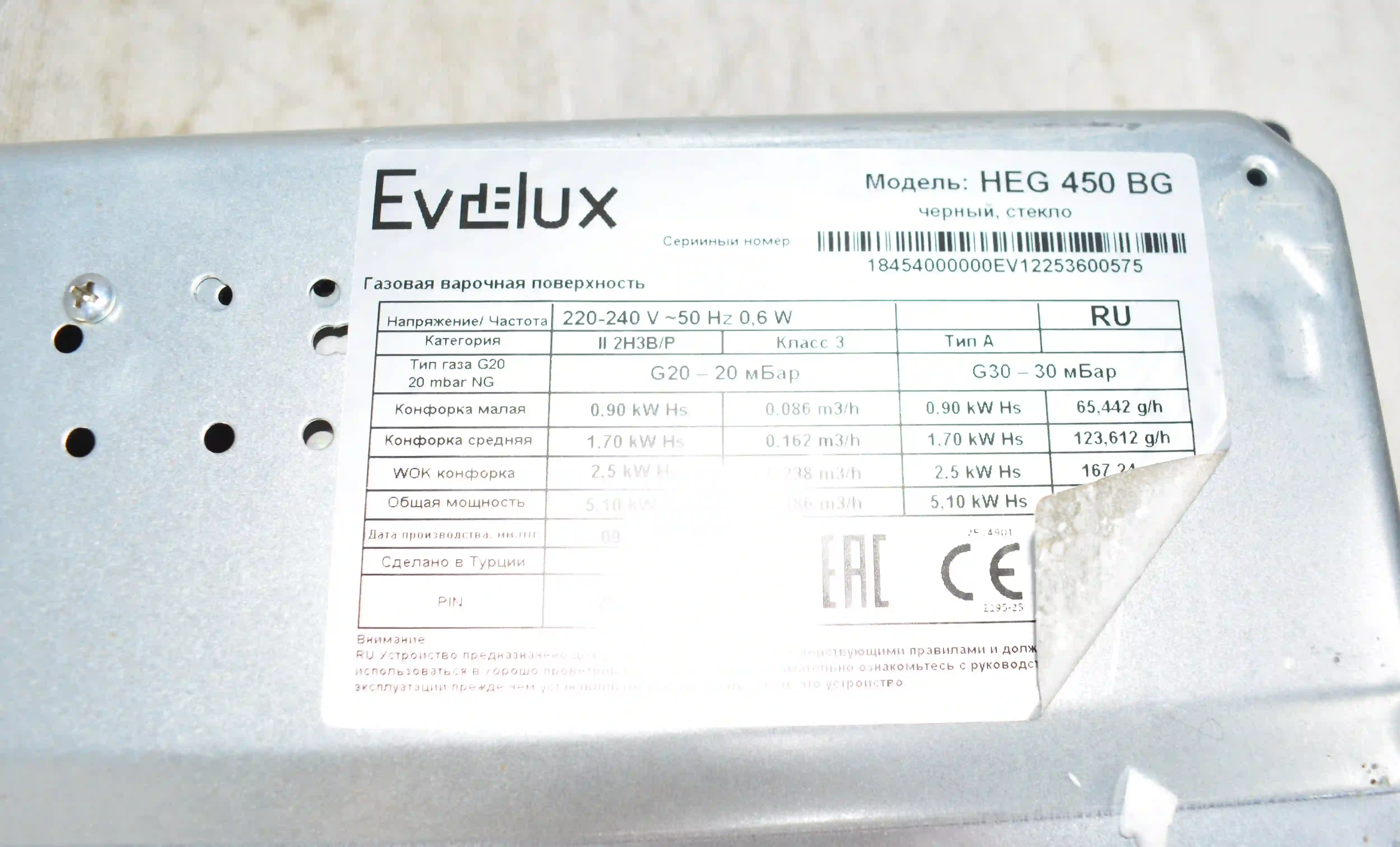 Встраиваемая газовая панель EVELUX HEG 450 BG k6 000095157