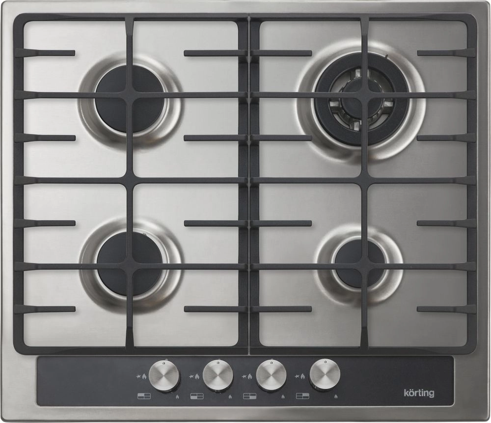 Поворотные регуляторы газовых варочных поверхностей Korting выполнены из металла, что создает профессиональный стиль и препятствует их нагреву.