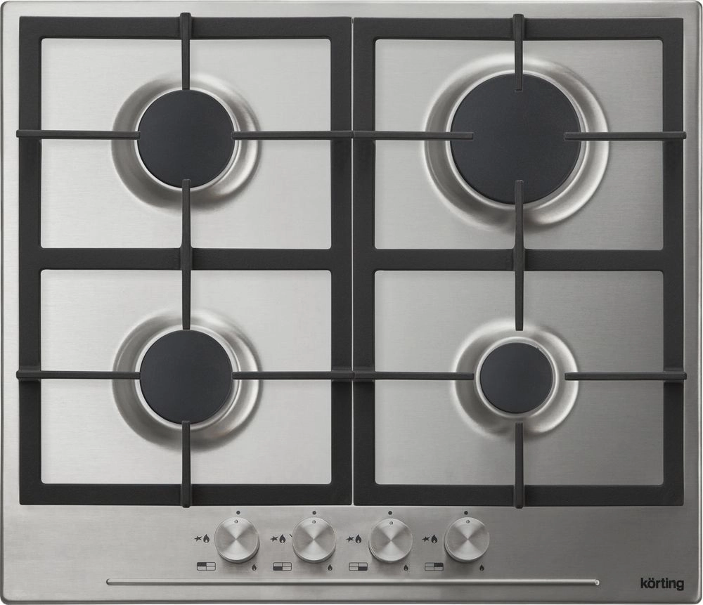 Поворотные регуляторы газовых варочных поверхностей Korting выполнены из металла, что создает профессиональный стиль и препятствует их нагреву.