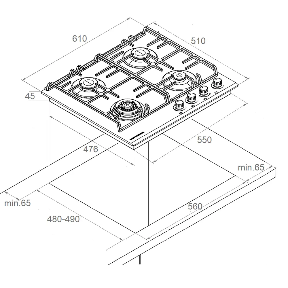 Встраиваемая газовая панель KUPPERSBERG FG 63 W