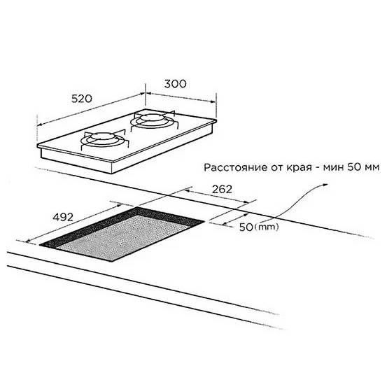 - Общее количество конфорок: 2