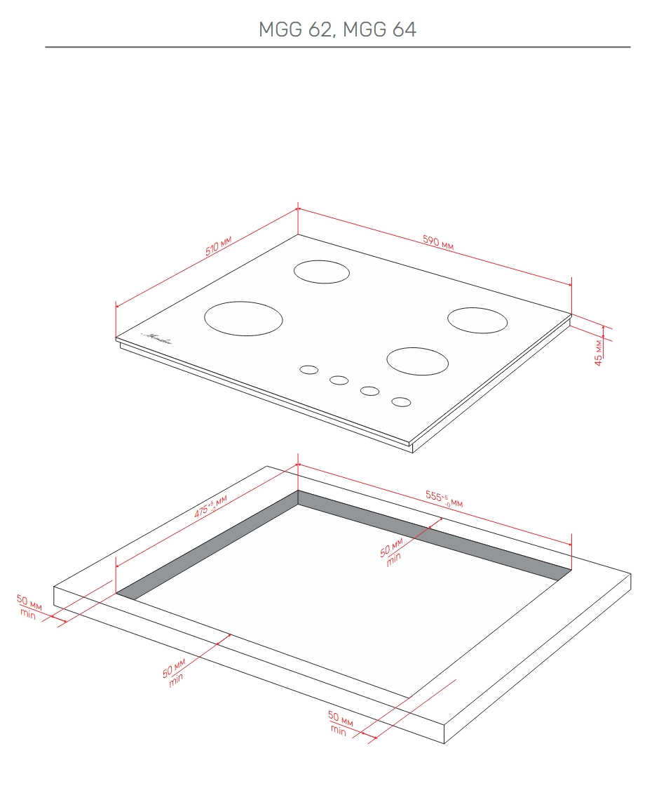 Встраиваемая газовая панель MONSHER MGG 62 Noir