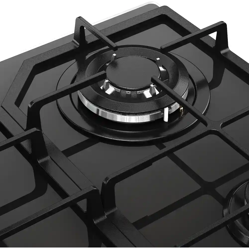 Передняя правая конфорка малая — имеет мощность 1000 Вт, передняя левая — усиленная на 3400 Вт. Обе задние стандартные — по 1750 Вт. Разная мощность и диаметр дают возможность готовить в посуде разного размера: от миниатюрной турки до больших сковород и кастрюль. Используются высококачественные и долговечные горелки Chinese SABAF.