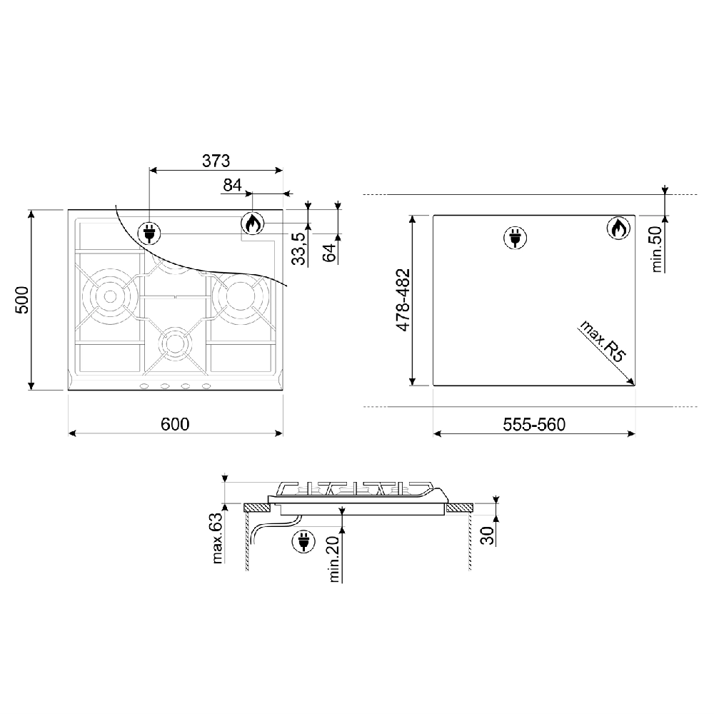 Встраиваемая газовая панель SMEG SR764AO