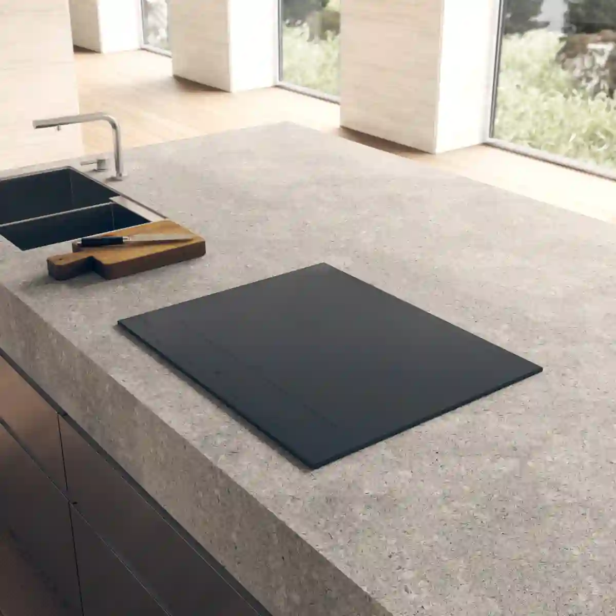 Рамка из черной матовой стали придает варочной панели элегантный и современный вид. Матовая поверхность устойчива к царапинам и легко очищается, что делает её идеальным выбором для активной кухни.