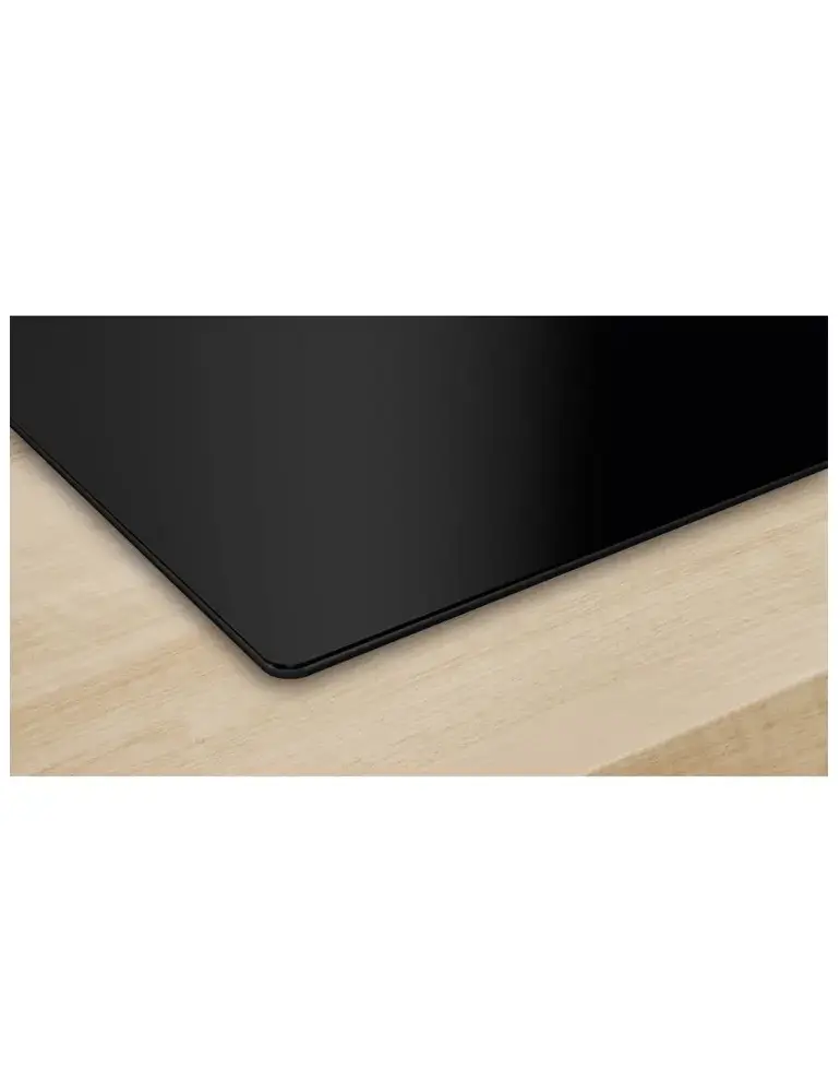 Корпус варочной панели Bosch PUE611HC1E выполнен из стеклокерамики черного цвета. Материал отличается высокой устойчивостью к различным повреждениям: на поверхности не появляются сколы, царапины и потертости, она легко очищается от загрязнений. Плита обладает скошенными краями.