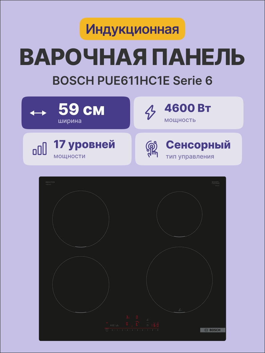 Встраиваемая индукционная панель BOSCH PUE611HC1E, чёрная