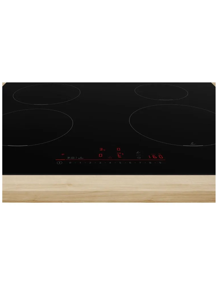 Прибор оборудован четырьмя круглыми индукционными конфорками разной мощности. Удобный выбор настроек обеспечивает сенсорный блок с дисплеем. В горелки интегрированы сенсоры распознавания посуды: при установке кастрюли и сковороды зона автоматически регулирует степень нагрева.