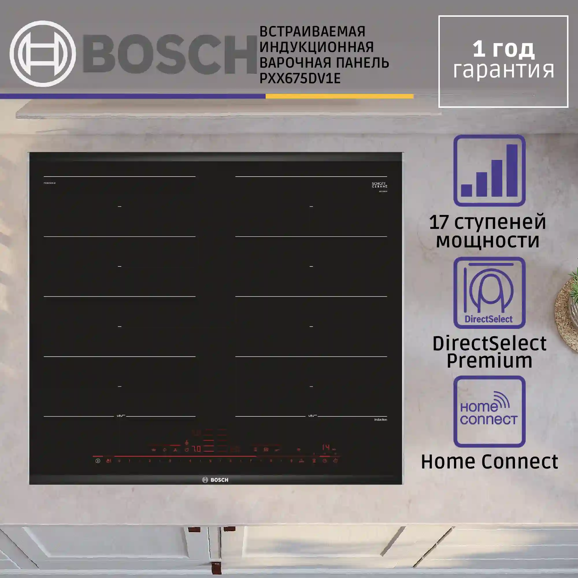 - Интуитивное понятное управление DirectSelect Premium позволяет быстро подобрать зону нагрева, мощность и дополнительные функции