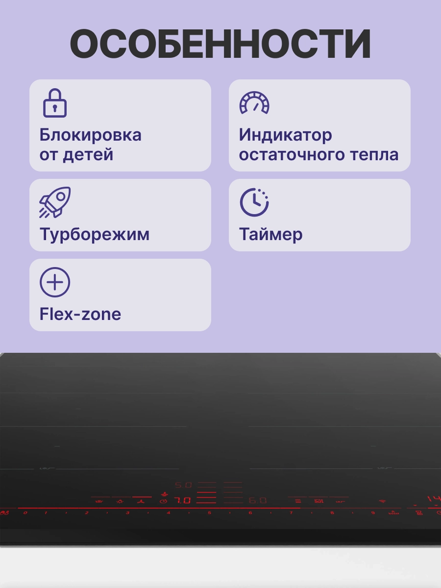 - Зона FlexInduction способна объединять несколько зон нагревания в одну для более удобного расположения как маленькой, так и большой посуды