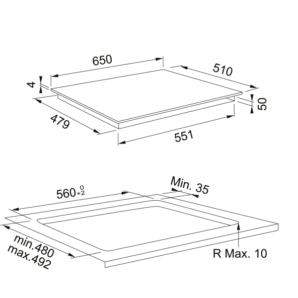 - Количество индукционных конфорок: 4
