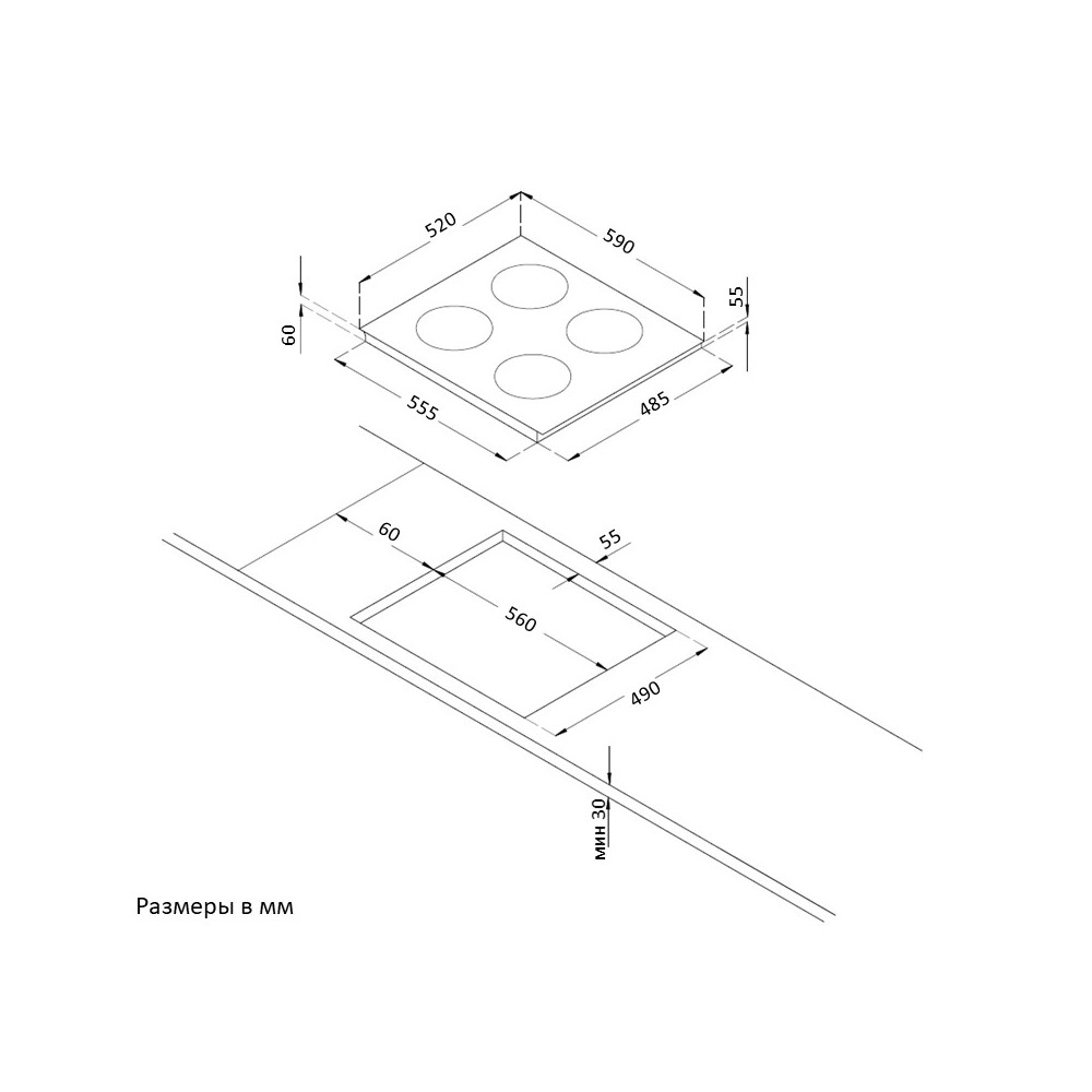 - Материал варочной панели: Стеклокерамика