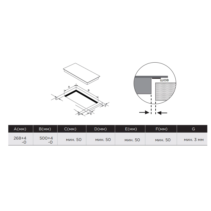 - Материал варочной панели: Закалённое стекло