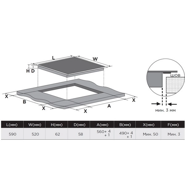 - Материал варочной панели: Стеклокерамика