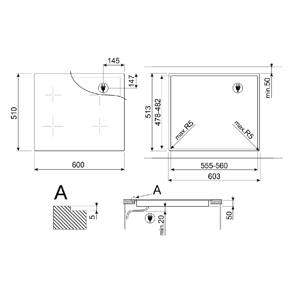 - Материал варочной панели: Закалённое стекло