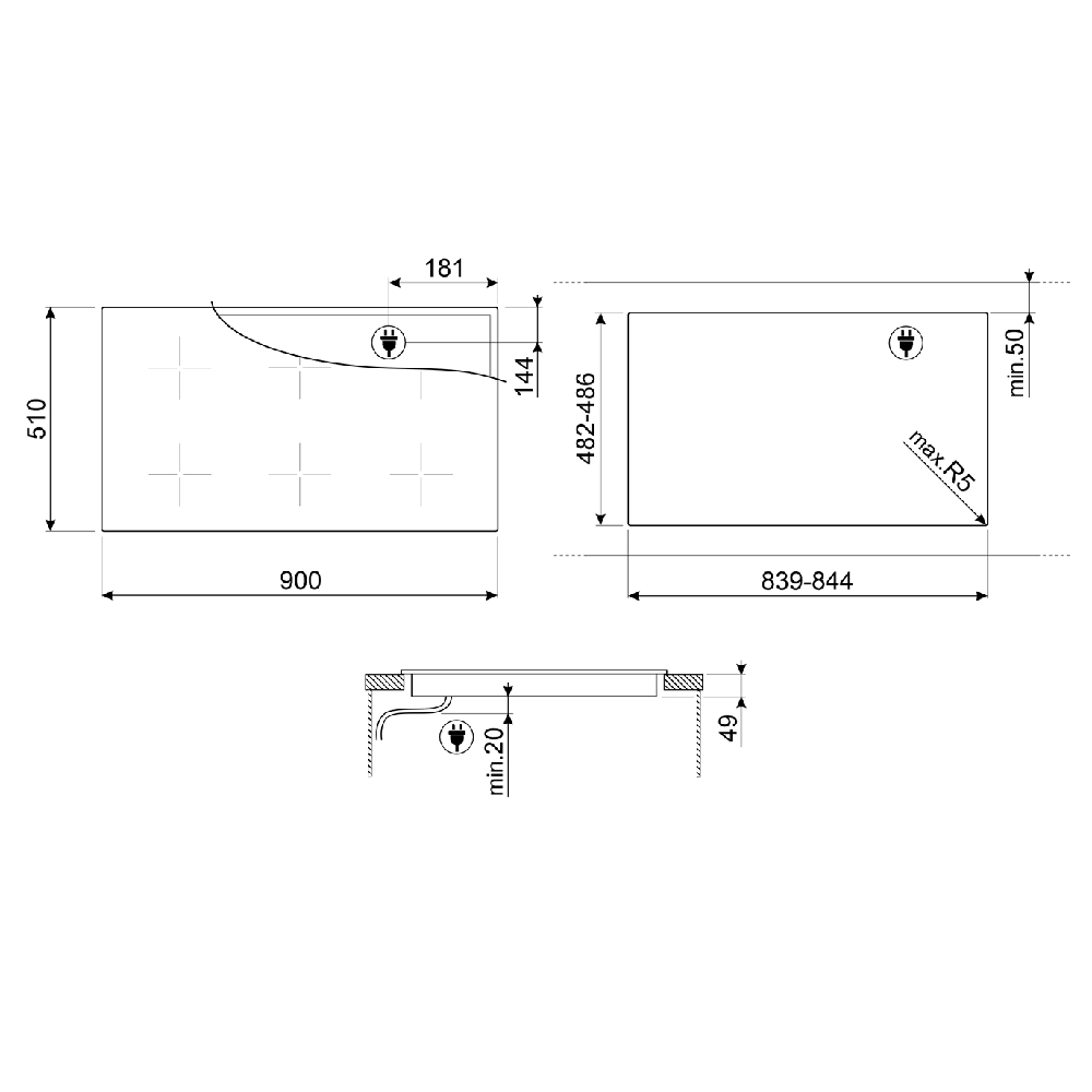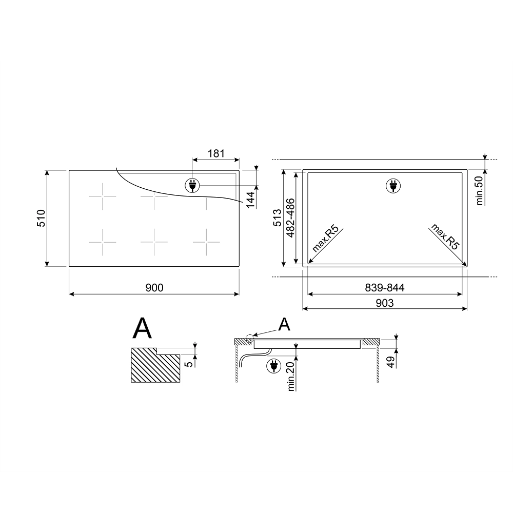 - Количество индукционных конфорок: 5