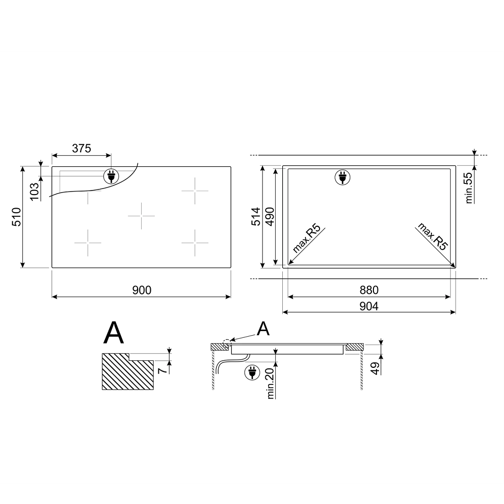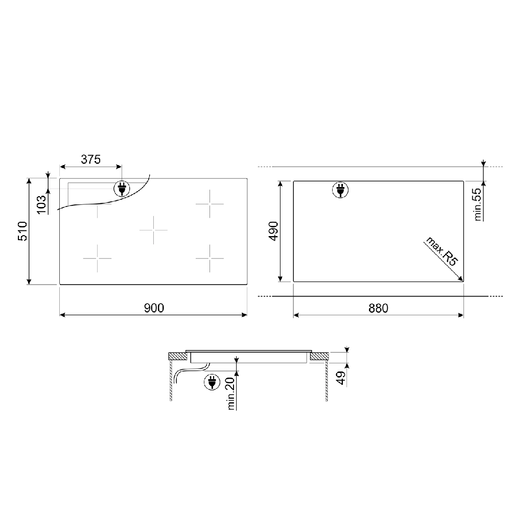- Количество индукционных конфорок: 5