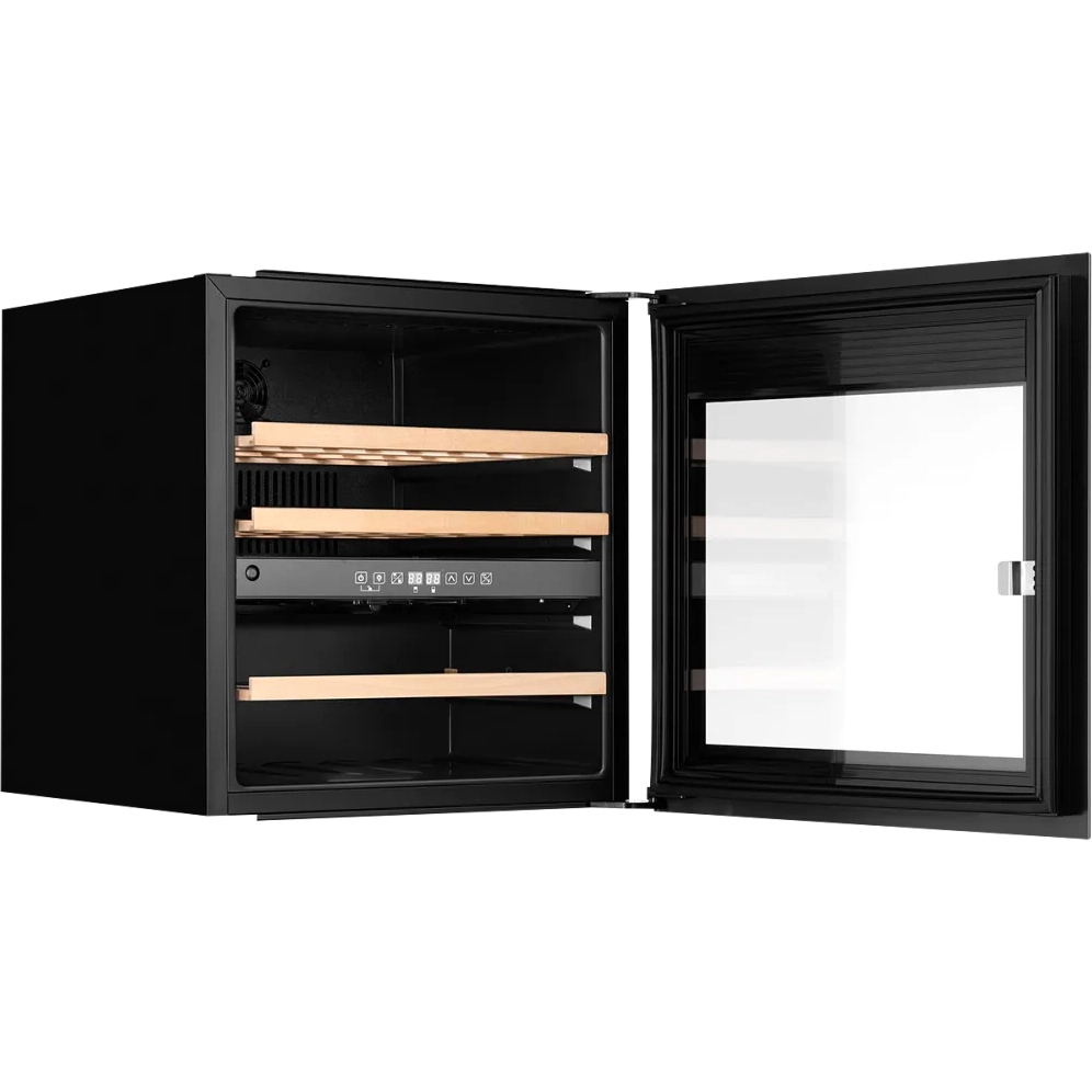 Объем шкафа составляет 85 литров, что позволяет разместить до 36 бутылок стандартного размера. Три полки из натурального бука обеспечивают надежную фиксацию бутылок и создают уютную атмосферу внутри шкафа. Продуманная организация пространства позволяет удобно расположить коллекцию напитков.