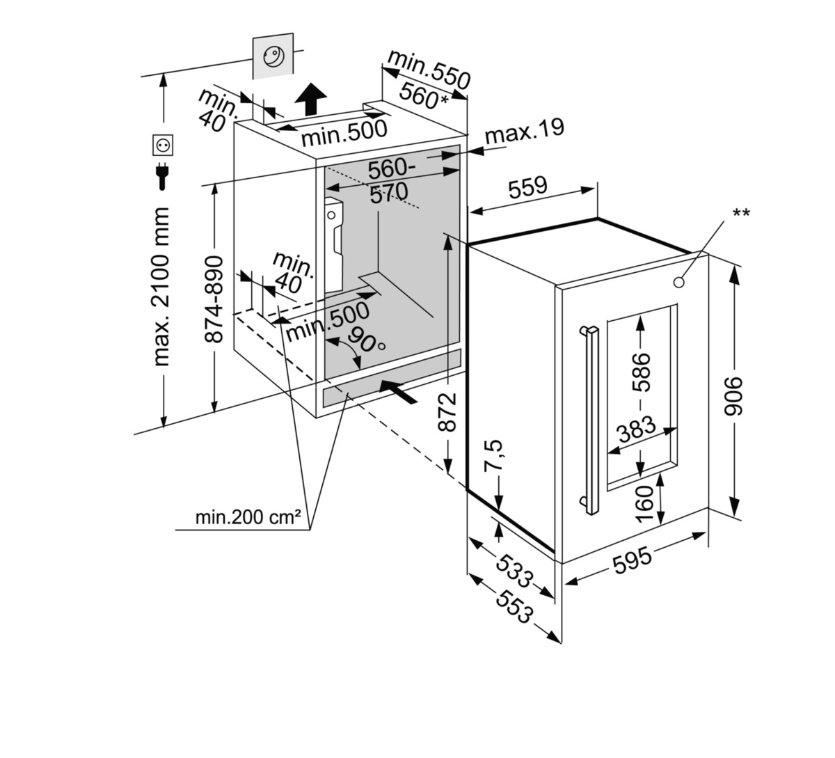 Подходящие размеры ниши обеспечивают максимальную гибкость при установке устройства. Высота варьируется от 87,4 до 88 сантиметров, ширина составляет от 56 до 57 сантиметров, глубина равна 55 сантиметрам. Таким образом, устройство идеально вписывается практически в любую кухонную мебель или интерьер комнаты.