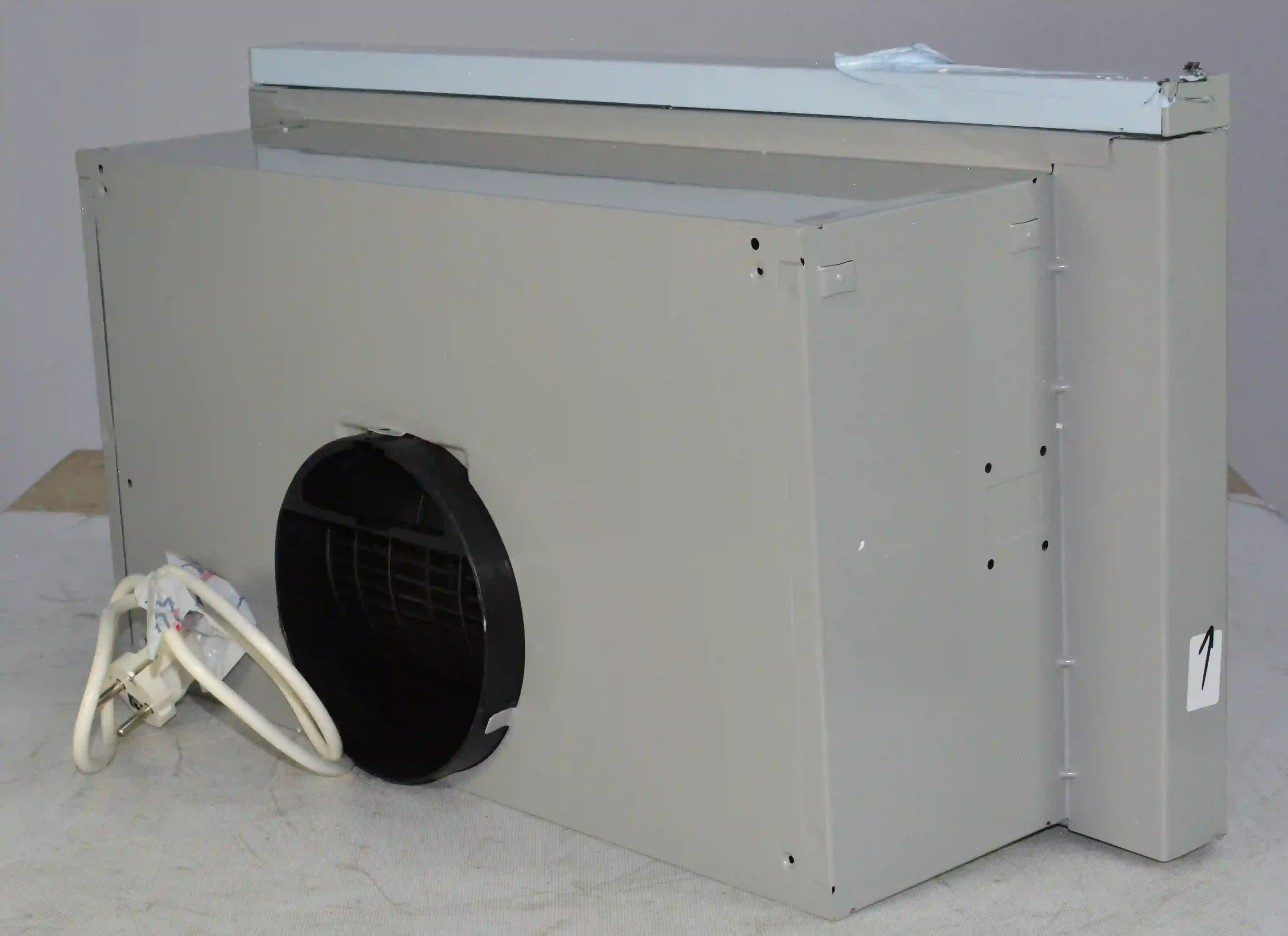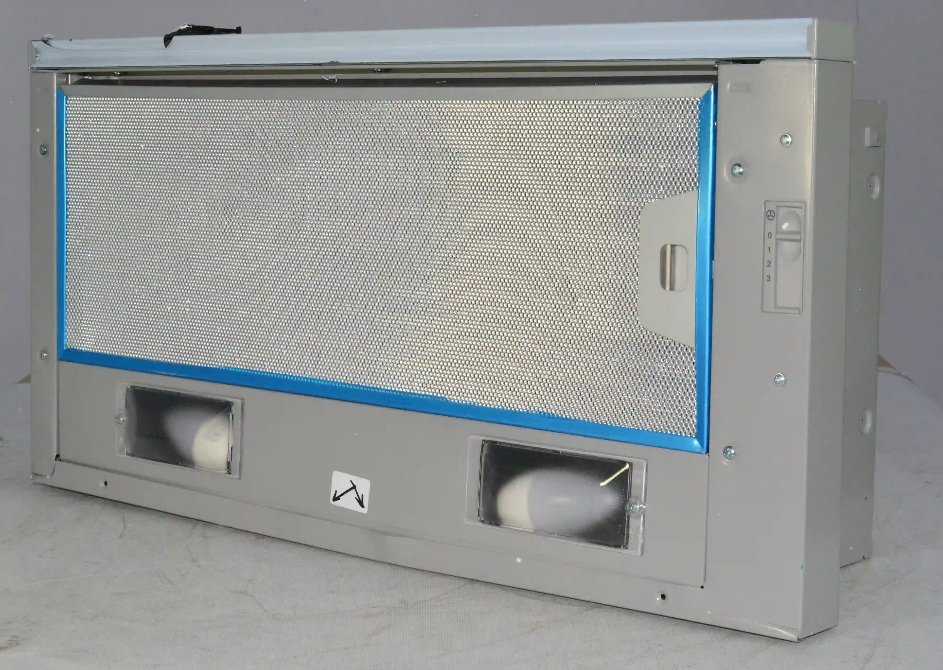 Для установки корпуса размером 13,5х60х28 см в навесной шкаф не требуется использование дополнительных приспособлений. Для подключения устройства к электросети с напряжением 220-240 В предусмотрен кабель длиной 1,3 м. Диаметр воздуховода составляет 150 мм. Съемный жироулавливающий сетчатый фильтр изготовлен из металла и очищается от налета с помощью воды, губки или щетки, моющего средства. Потребляемая мощность вытяжки равна 125 Вт.