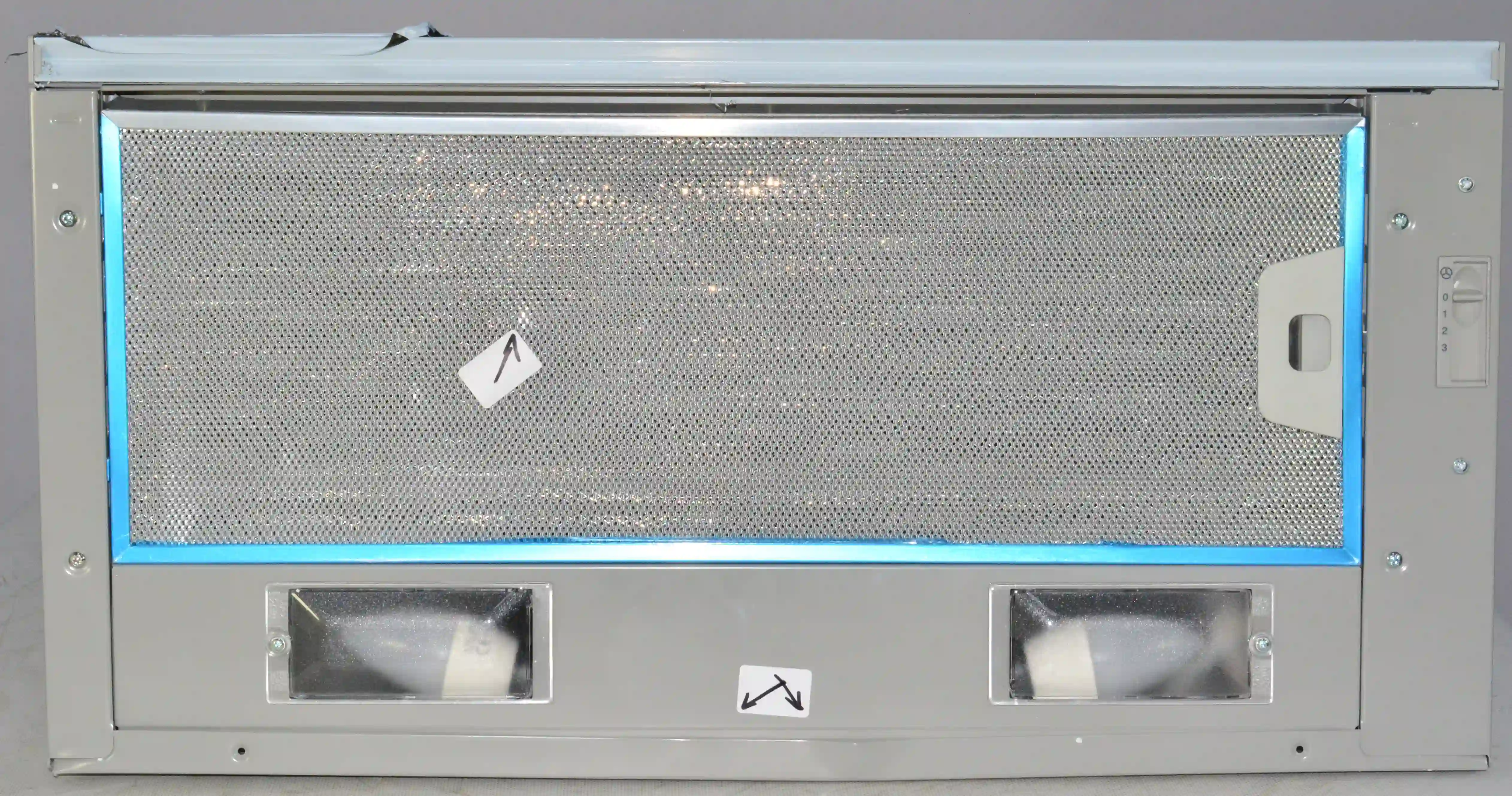 На корпусе из нержавеющей стали предусмотрен ползунковый переключатель для выбора скорости работы мотора. Две LED-лампы мощностью 4Вт обеспечивают освещение варочной панели в любое время суток. Для активации двигателя достаточно выдвинуть внутреннюю стеклянную панель. Встроенный антивозвратный клапан исключает проникновение неприятного запаха из вентиляции обратно в комнату.