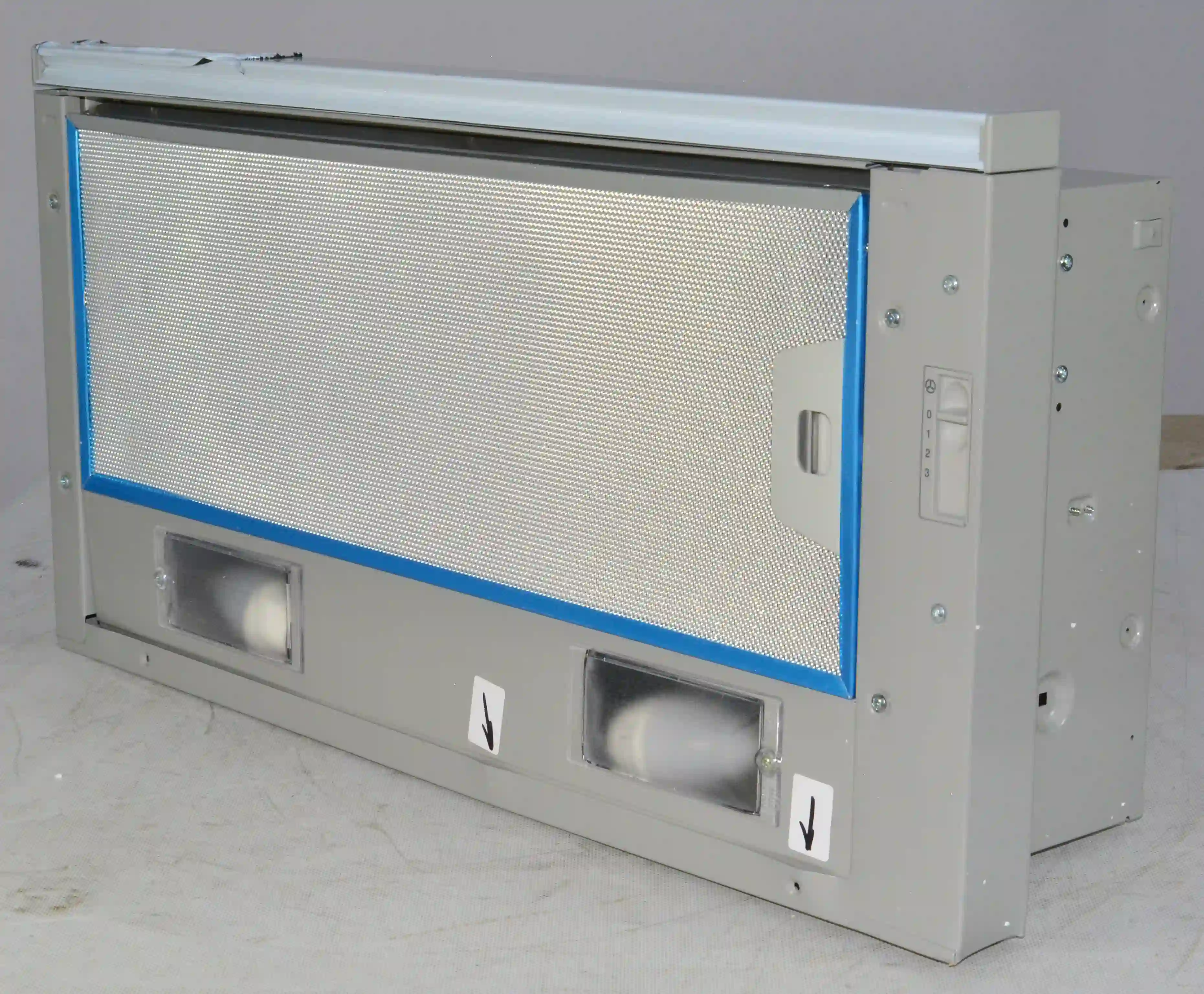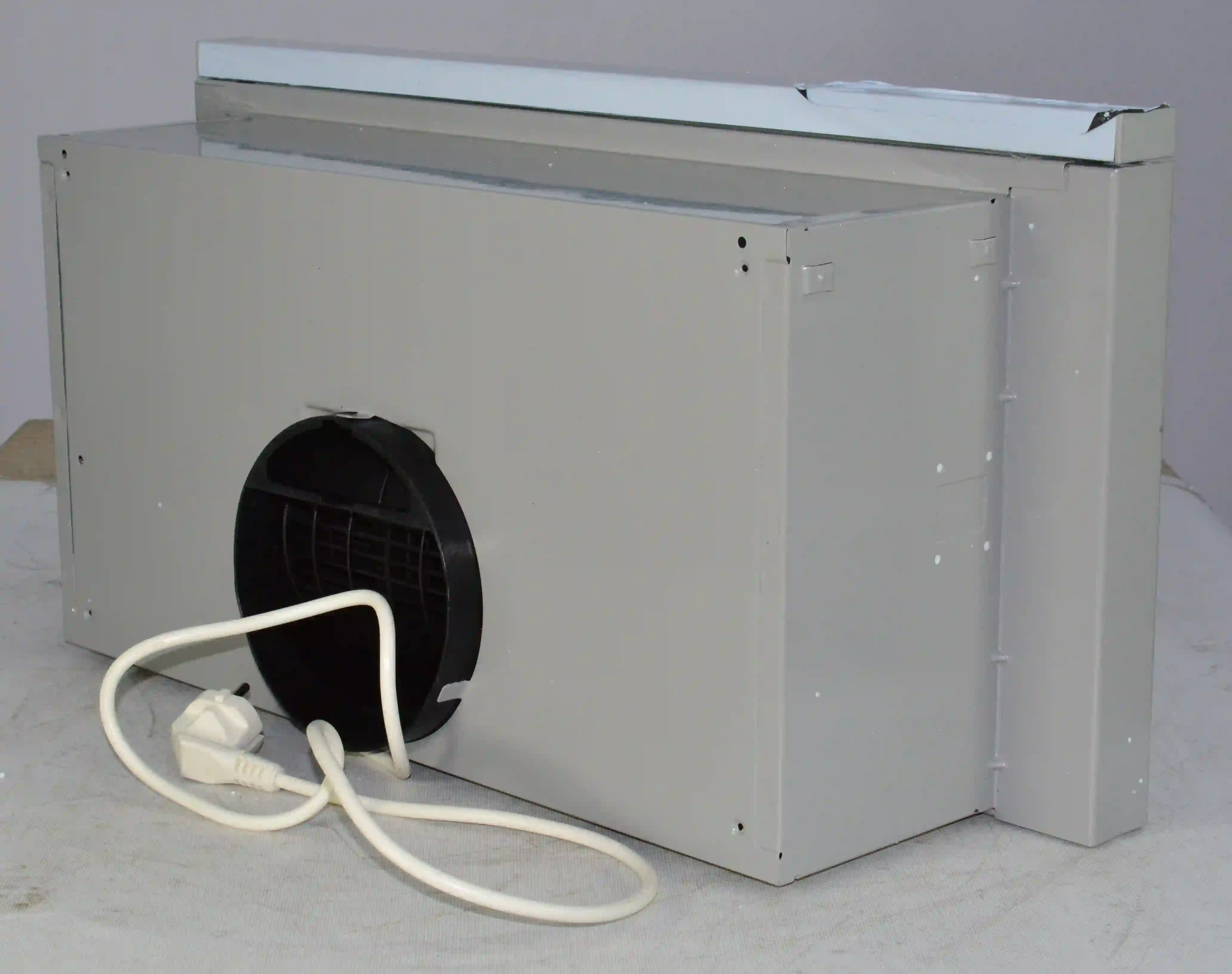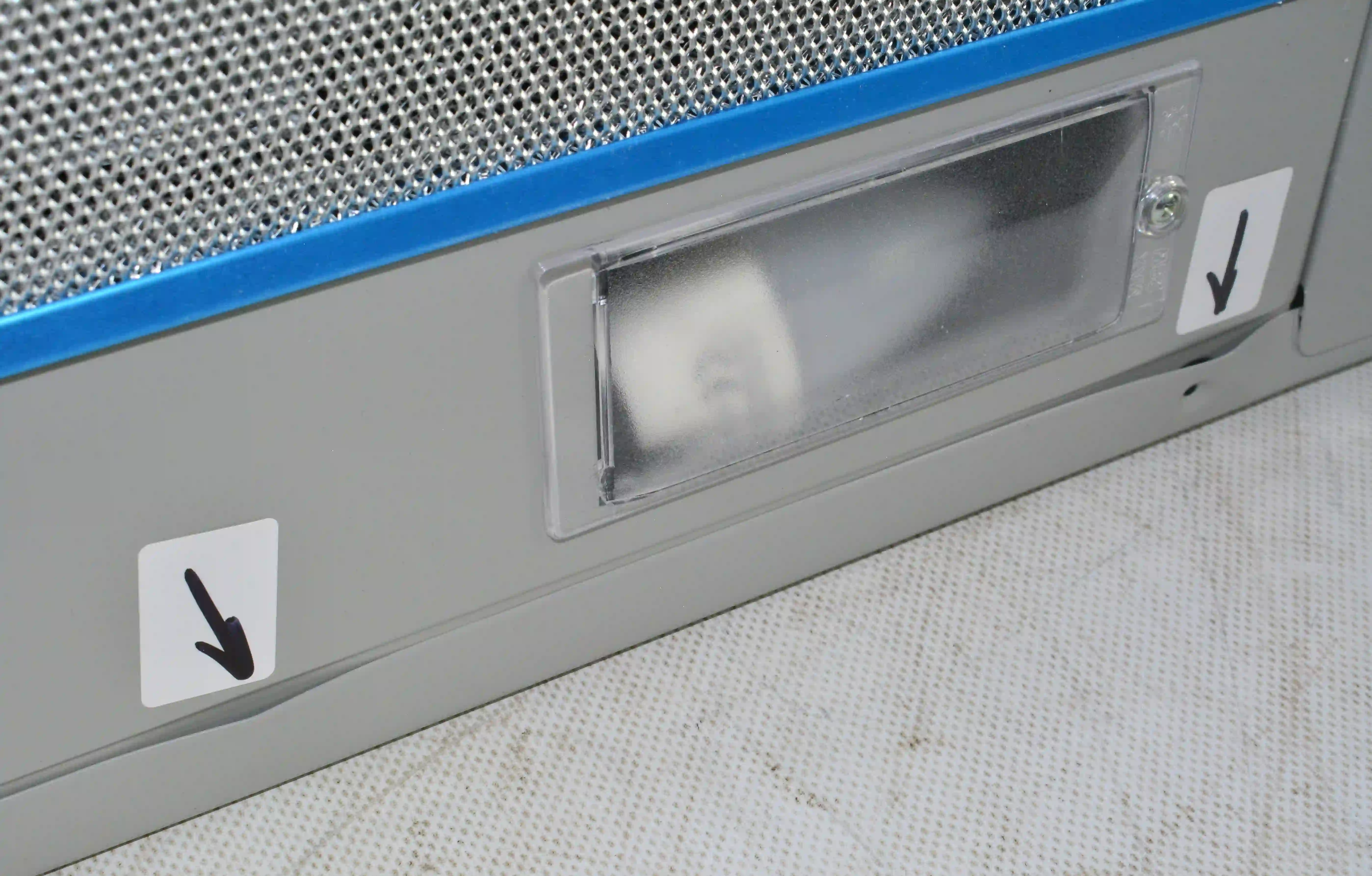 Для установки корпуса размером 13,5х60х28 см в навесной шкаф не требуется использование дополнительных приспособлений. Для подключения устройства к электросети с напряжением 220-240 В предусмотрен кабель длиной 1,3 м. Диаметр воздуховода составляет 150 мм. Съемный жироулавливающий сетчатый фильтр изготовлен из металла и очищается от налета с помощью воды, губки или щетки, моющего средства. Потребляемая мощность вытяжки равна 125 Вт.