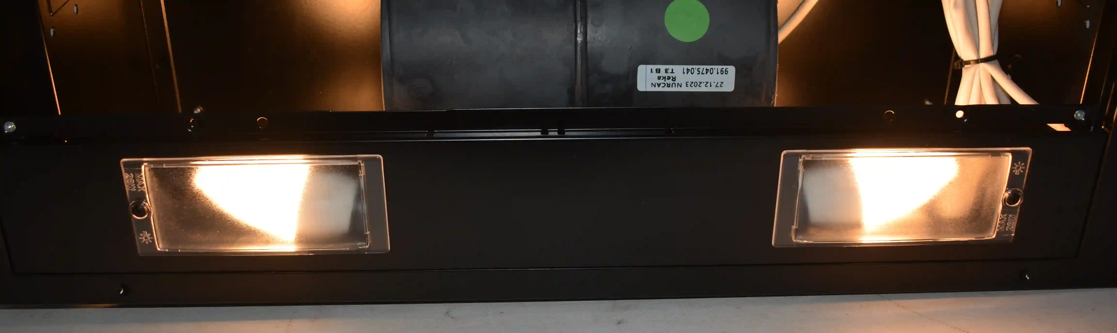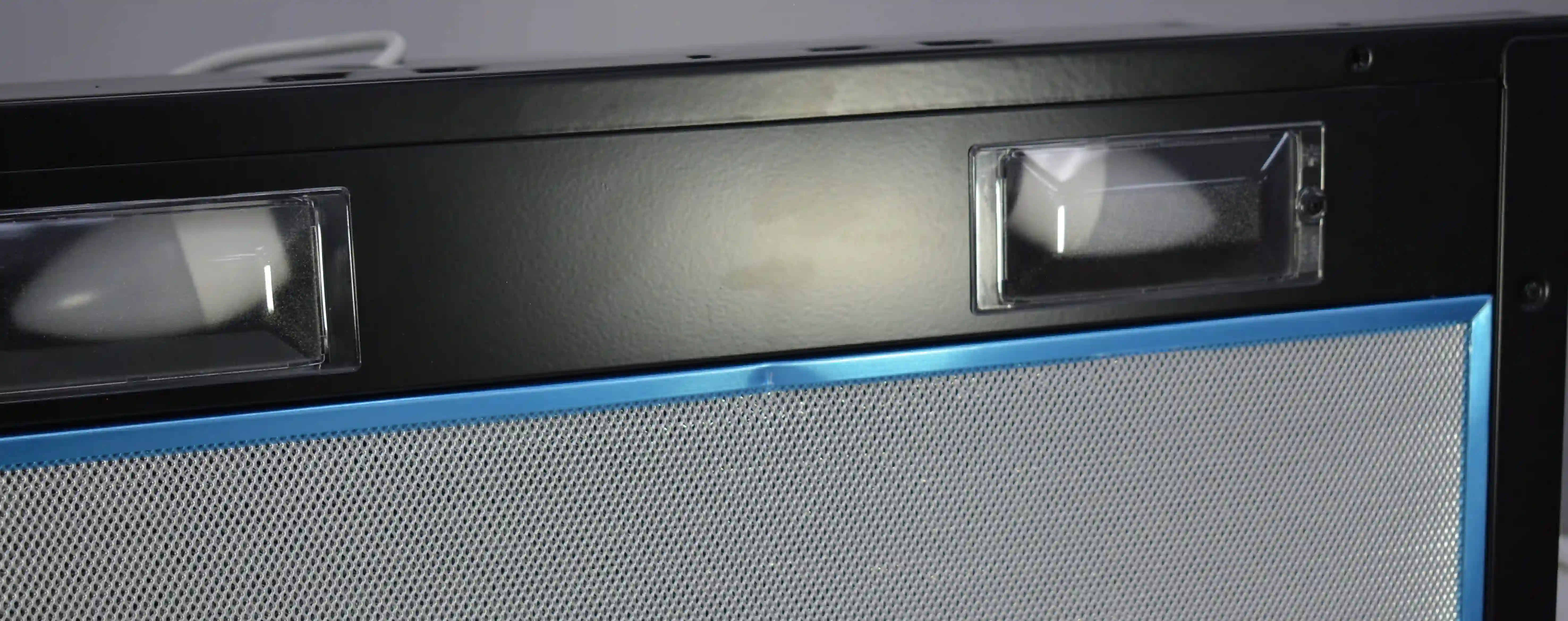 На корпусе из нержавеющей стали предусмотрен ползунковый переключатель для выбора скорости работы мотора. Две LED-лампы мощностью 4Вт обеспечивают освещение варочной панели в любое время суток. Для активации двигателя достаточно выдвинуть внутреннюю стеклянную панель. Встроенный антивозвратный клапан исключает проникновение неприятного запаха из вентиляции обратно в комнату.