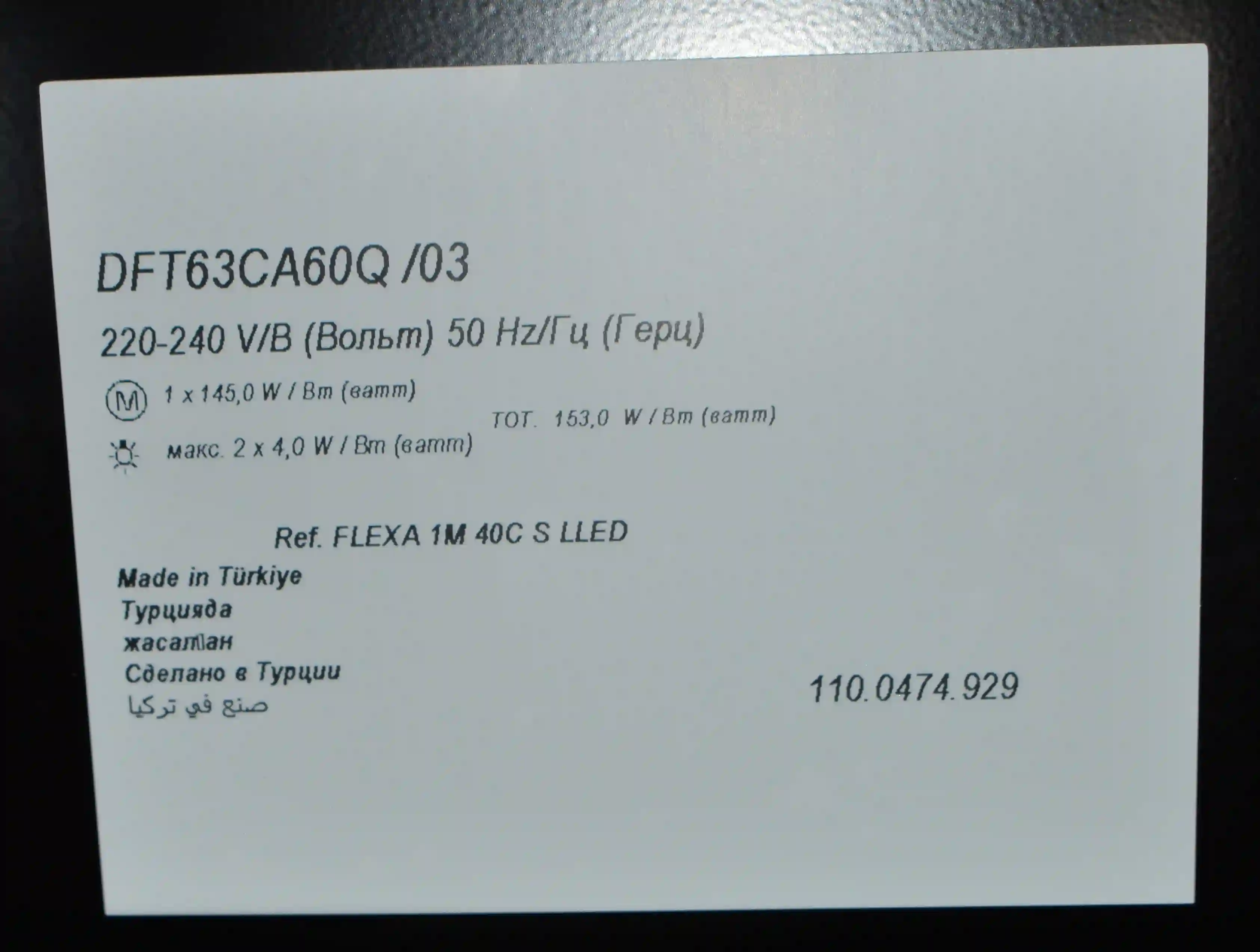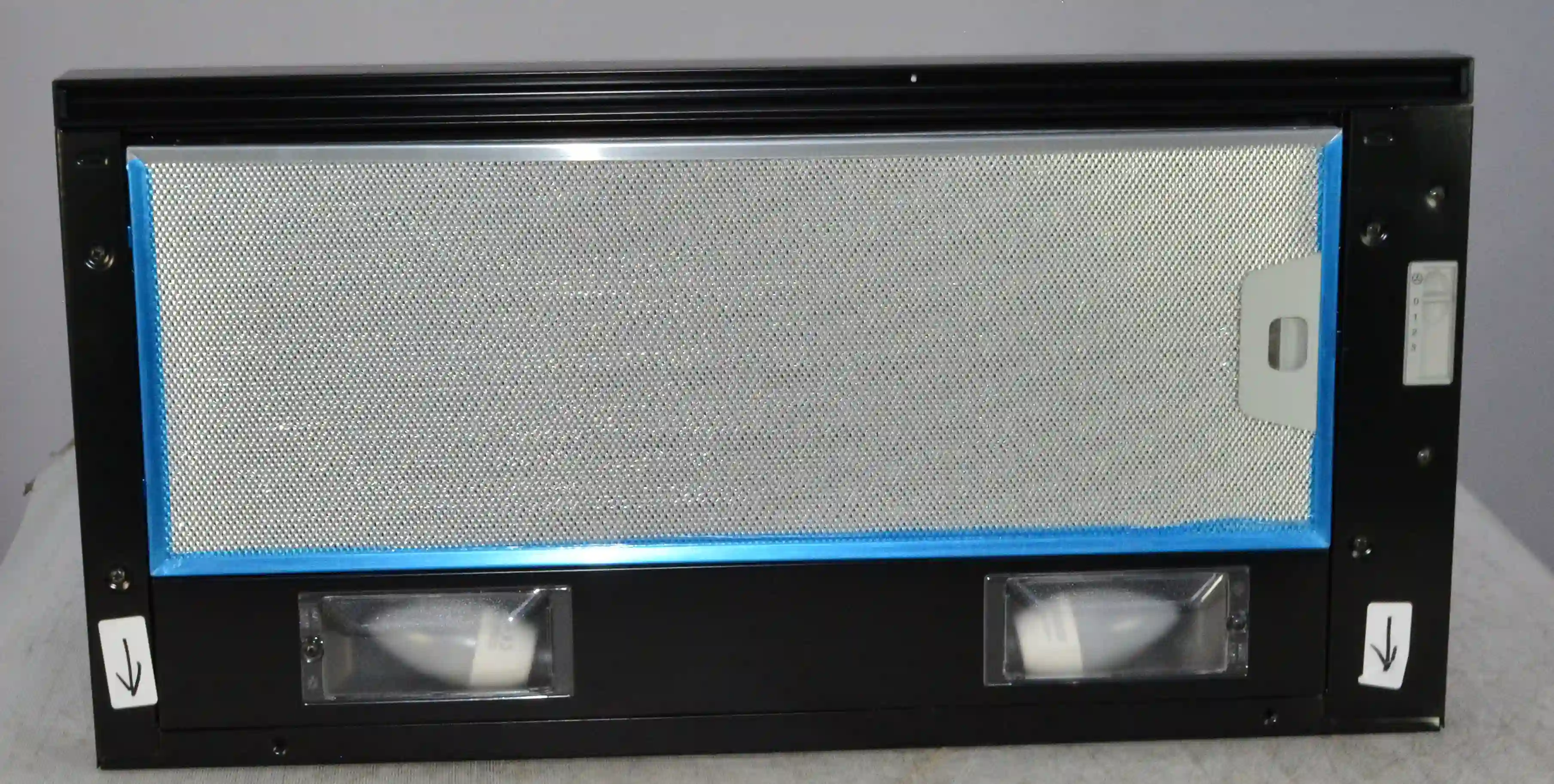 Для установки корпуса размером 13,5х60х28 см в навесной шкаф не требуется использование дополнительных приспособлений. Для подключения устройства к электросети с напряжением 220-240 В предусмотрен кабель длиной 1,3 м. Диаметр воздуховода составляет 150 мм. Съемный жироулавливающий сетчатый фильтр изготовлен из металла и очищается от налета с помощью воды, губки или щетки, моющего средства. Потребляемая мощность вытяжки равна 125 Вт.