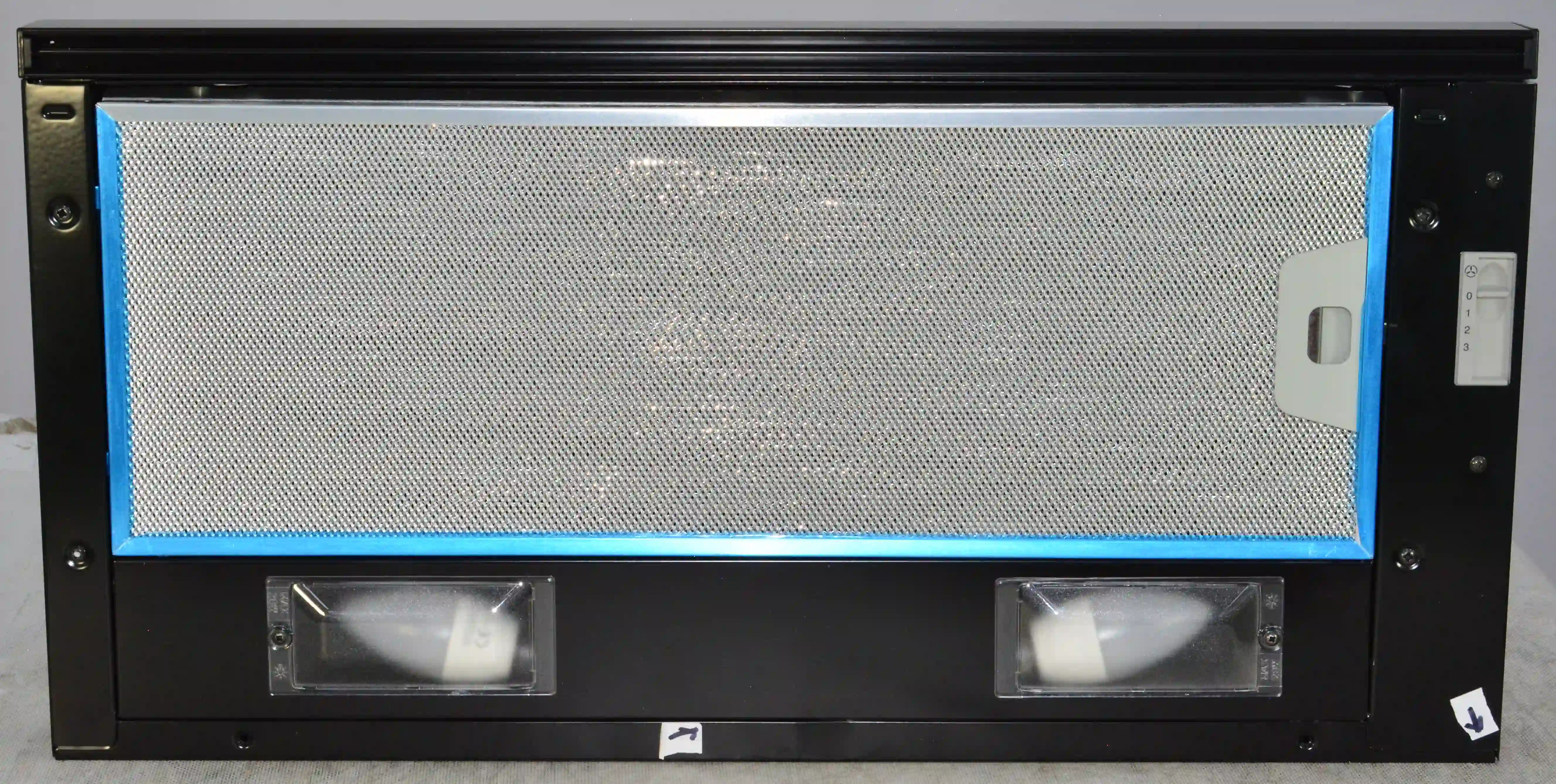 На корпусе из нержавеющей стали предусмотрен ползунковый переключатель для выбора скорости работы мотора. Две LED-лампы мощностью 4Вт обеспечивают освещение варочной панели в любое время суток. Для активации двигателя достаточно выдвинуть внутреннюю стеклянную панель. Встроенный антивозвратный клапан исключает проникновение неприятного запаха из вентиляции обратно в комнату.